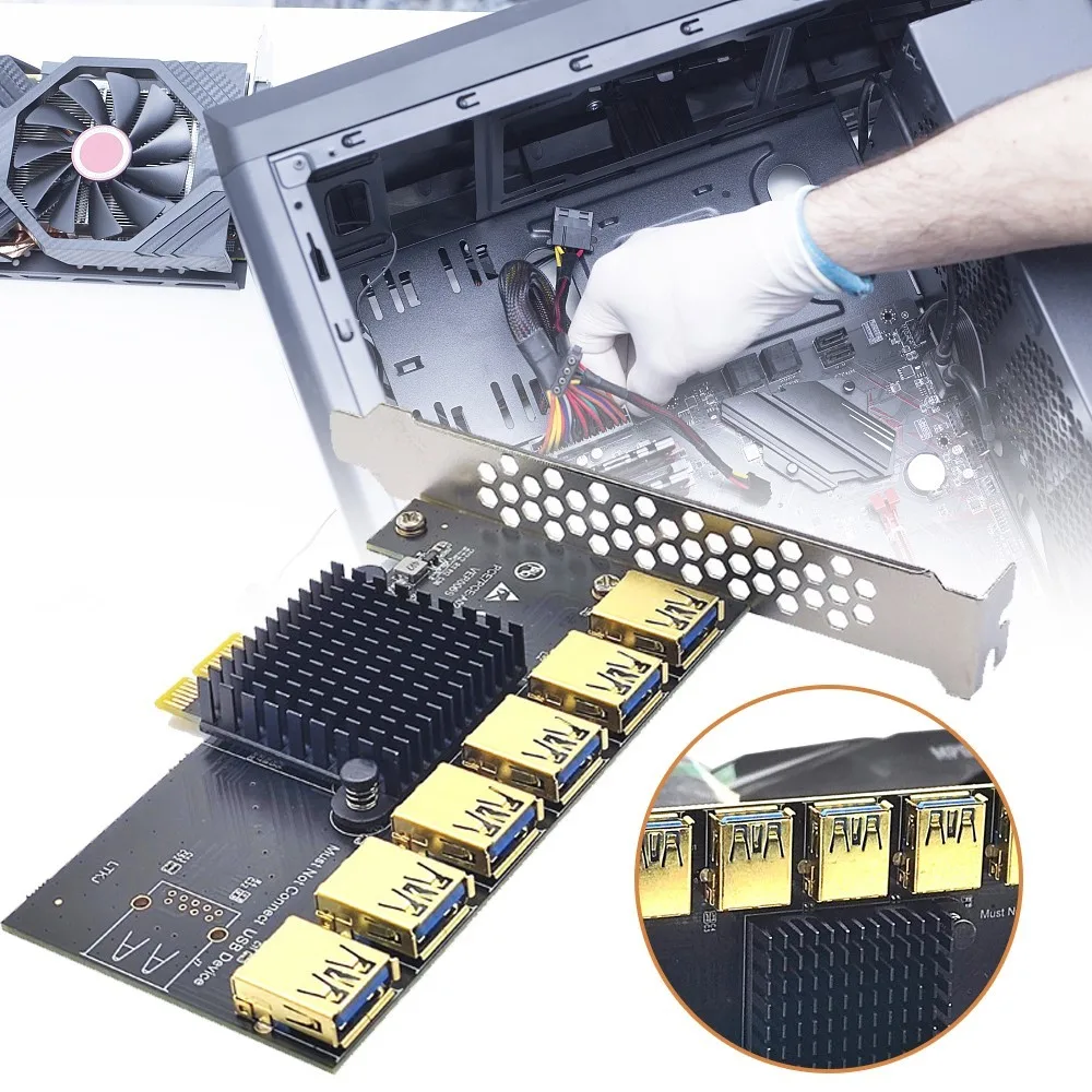1. PCIE x4 до USB3.0 адаптер 6 слотов приносит большую расширяемость.