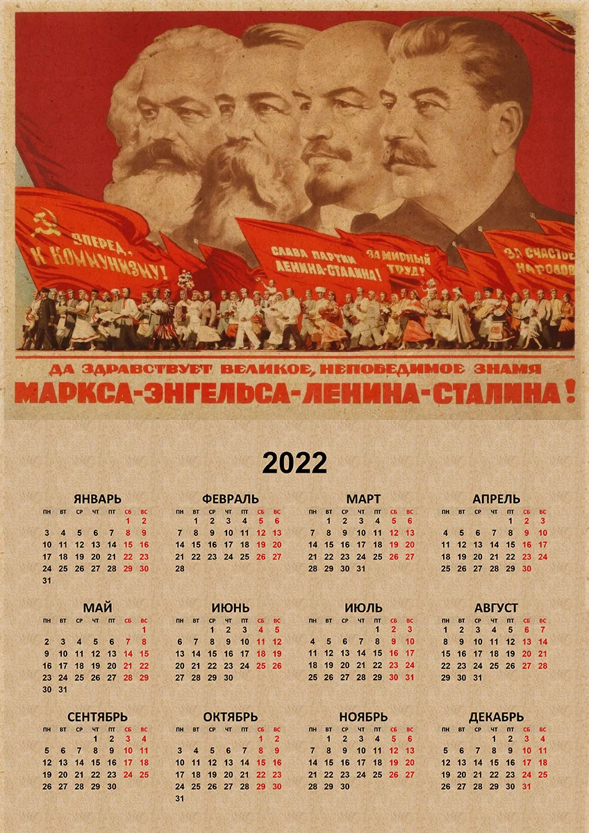 Постеры из крафт-бумаги в Советском Союзе CCCP президент СССР Сталин Маркс Ленин 2022 календарь стикер домашний декор Русская версия