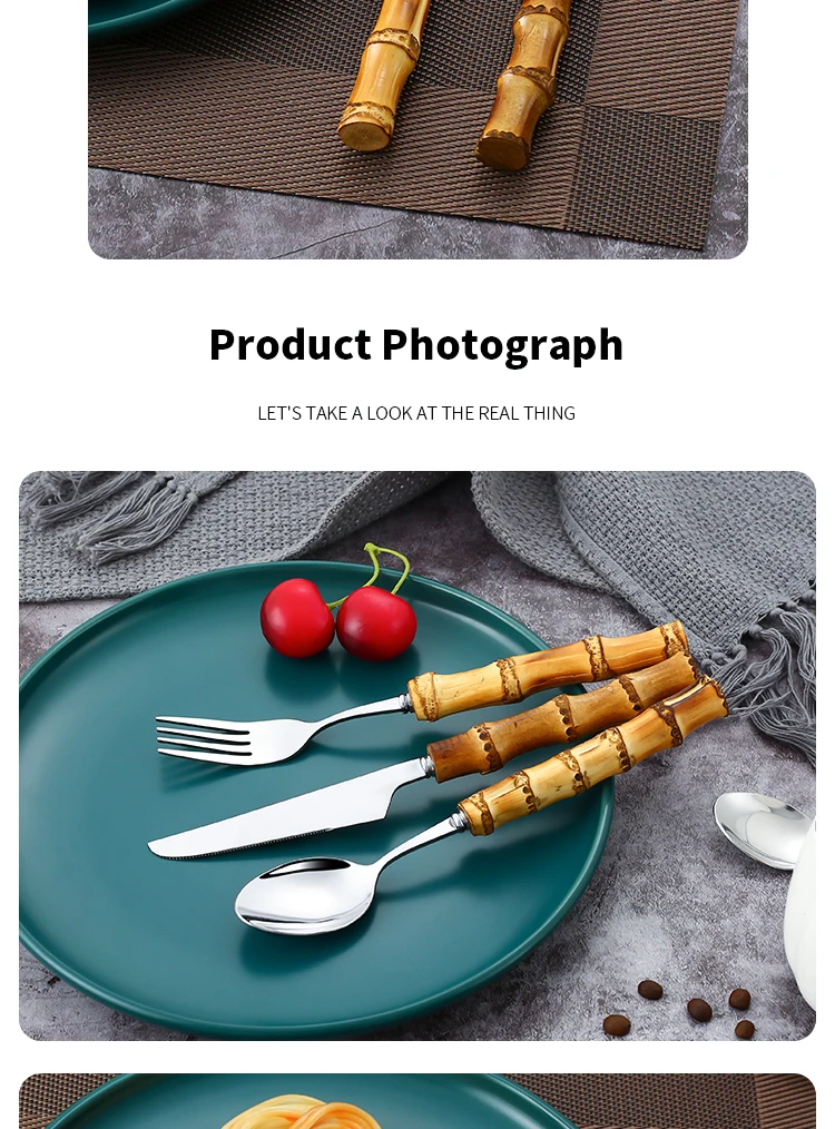 Отзывы о 6 шт. столовая посуда из натурального бамбука набор роскошной посуды нержавеющей