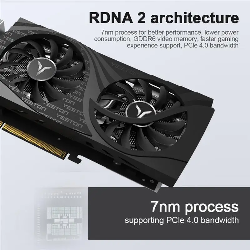 3. Процесс 7 нм имеет более высокую производительность и низкое энергопотребление, память GDDR6 обеспечивает более быстрый игровой опыт и поддерживает пропускную способность PClE 4,0.
