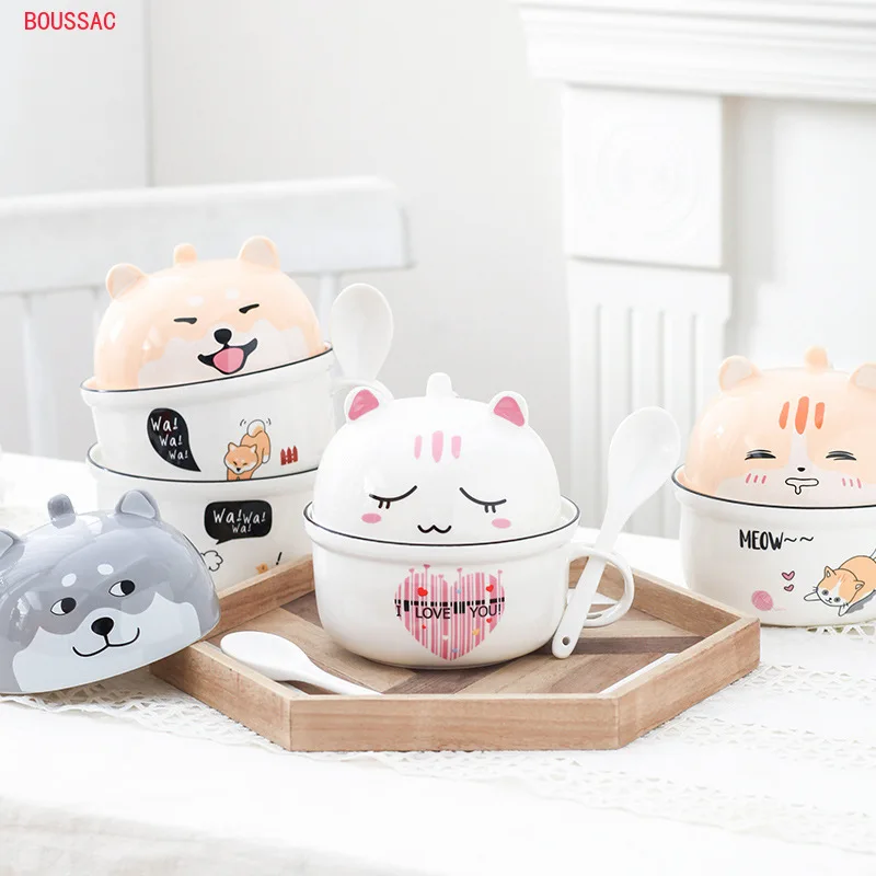 Отзывы о Мультяшная керамическая миска для лапши быстрого приготовления с крышкой