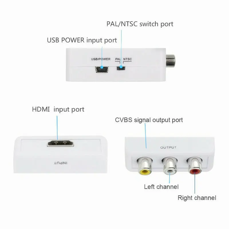 ✔Преобразование без потерь-RCA на HDMI с usb-кабелем для зарядки. С совершенно новым чипом декодера и улучшенной Обработкой сигналов с высокой точностью, окраской и разрешением. Изображение изысканное и стабильное, без нечетких линий или задержек.