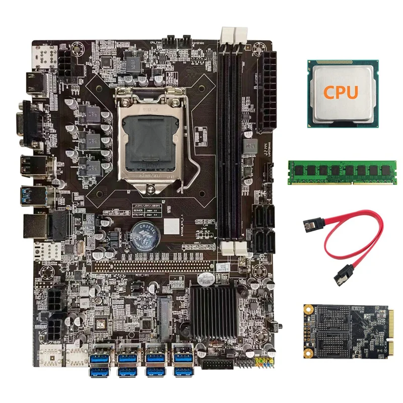 Отзывы о Материнская плата B75 USB BTC для майнинга + случайный ЦП DDR3 4 Гб 1600 МГц ОЗУ 128G SSD SATA