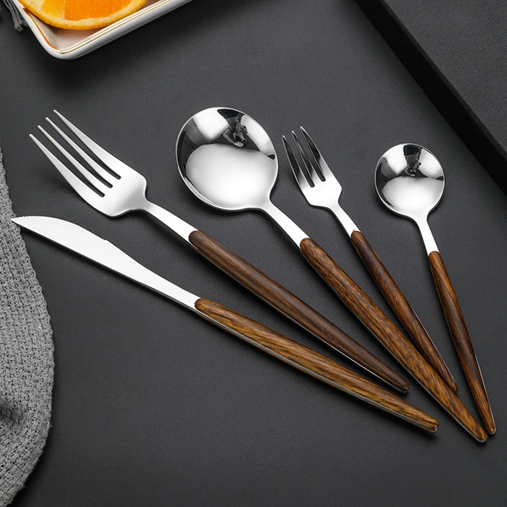 5 комплект столовых приборов, металлическая ложка, вилка, нож, набор посуды с деревянной ручкой для кухни, свадебный стол, Декор