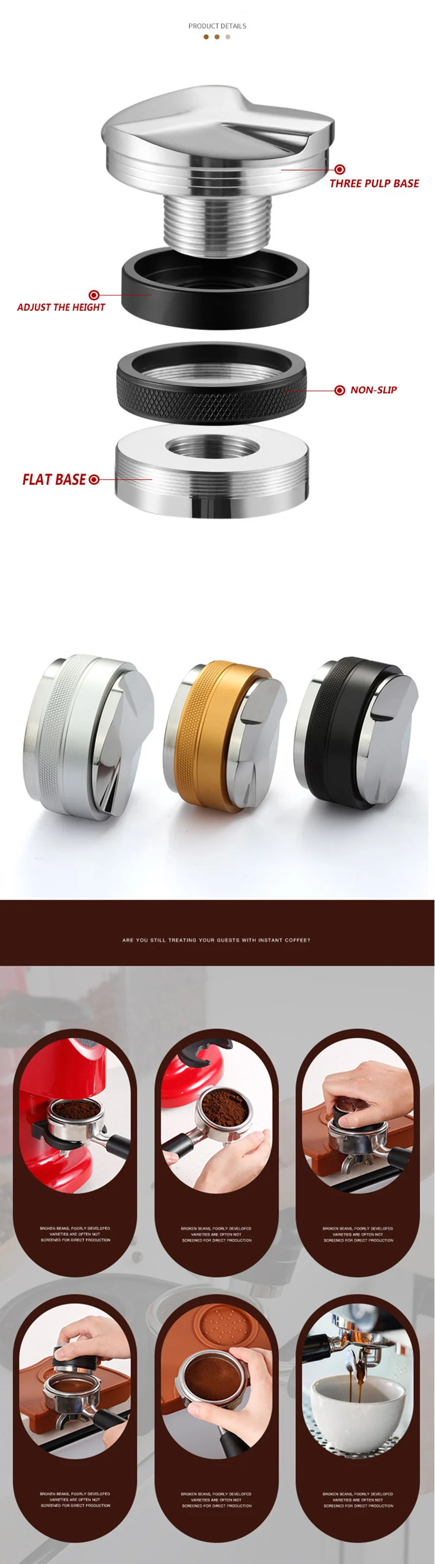51/53/58 мм двойной Кофе вскрытия Нержавеющая сталь эспрессо вскрытия три под углом наклона и плоское основание Регулируемый порошок молоток
