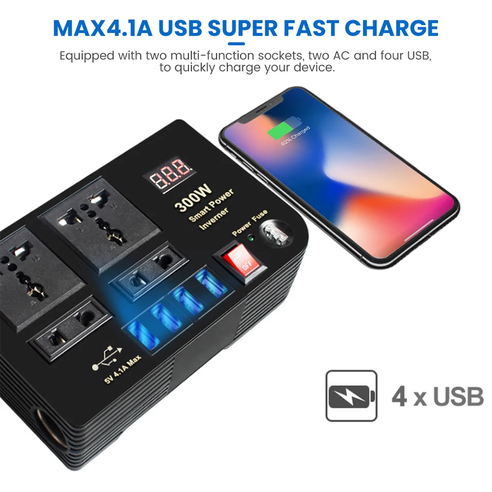 Отзывы о Автомобильные инверторы AOSHIKE 300 Вт 12 В постоянного тока в переменный ток а 4