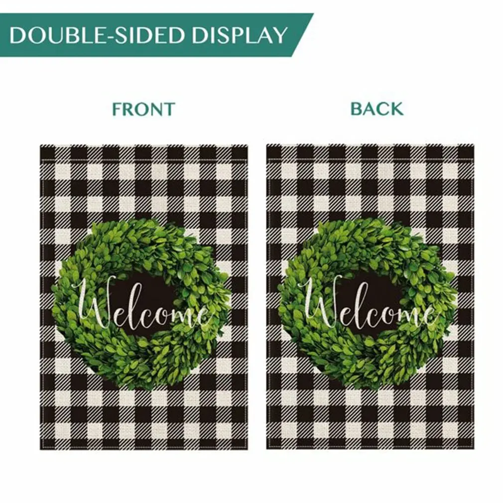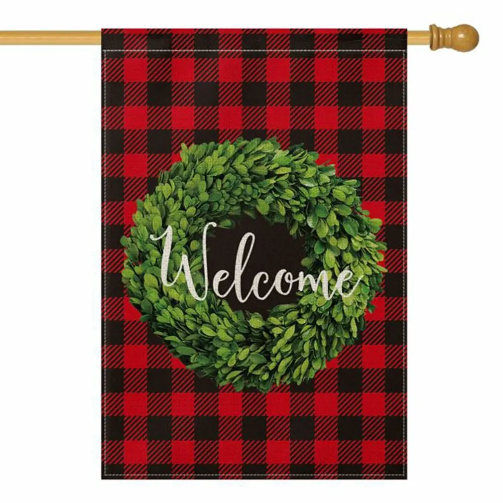 1. Наружный декор: Рождественский Садовый флаг украшен черно-красным клетчатым фоном с крутой птицы на венке, чтобы приветствовать гостей в вашем доме.