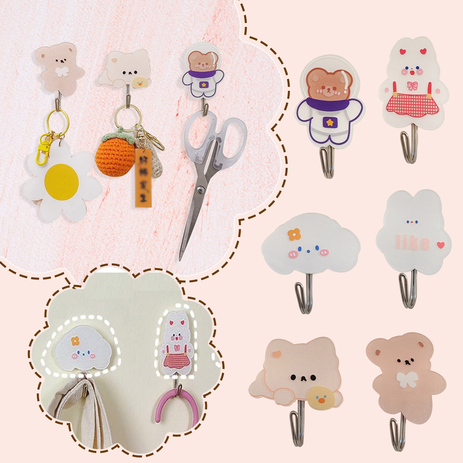 Милые Медвежонок крючки в форме кролика креативный клей крючок для пальто сверхпрочные декоративные настенные крючки для ключей полотенце рюкзаки шляпа