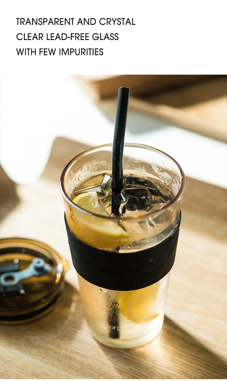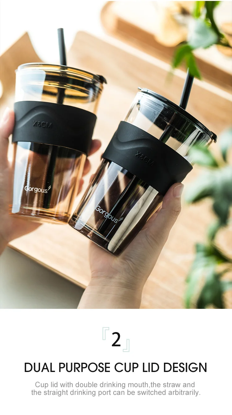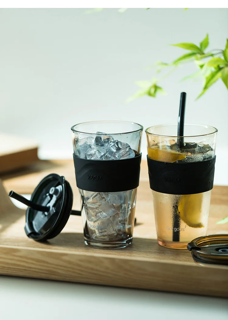 450 мл термостойкая стеклянная соломенная молочная кофейная чашка с крышкой для холодного заваривания молочного чая чашка для воды силиконовая кружка для воды с крышкой