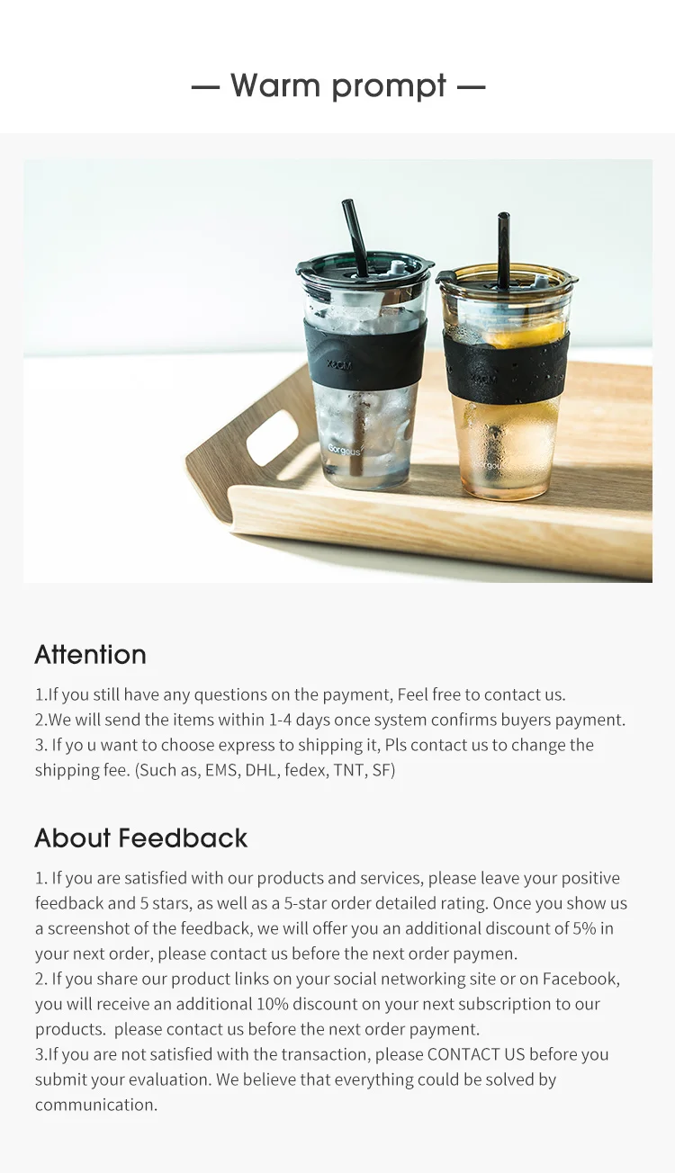 * Полный комплект включает: стеклянная чашка, Защитная силиконовая крышка, прозрачная стеклянная солома и силиконовая крышка *