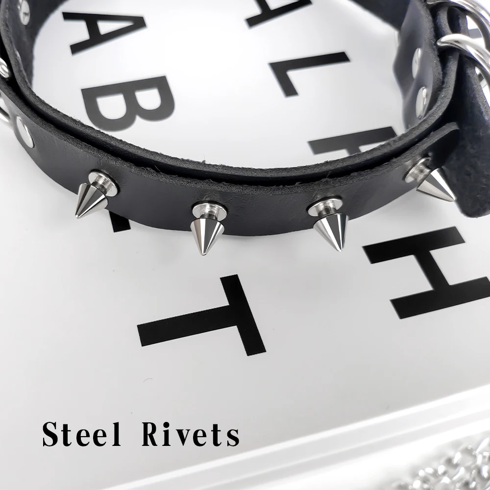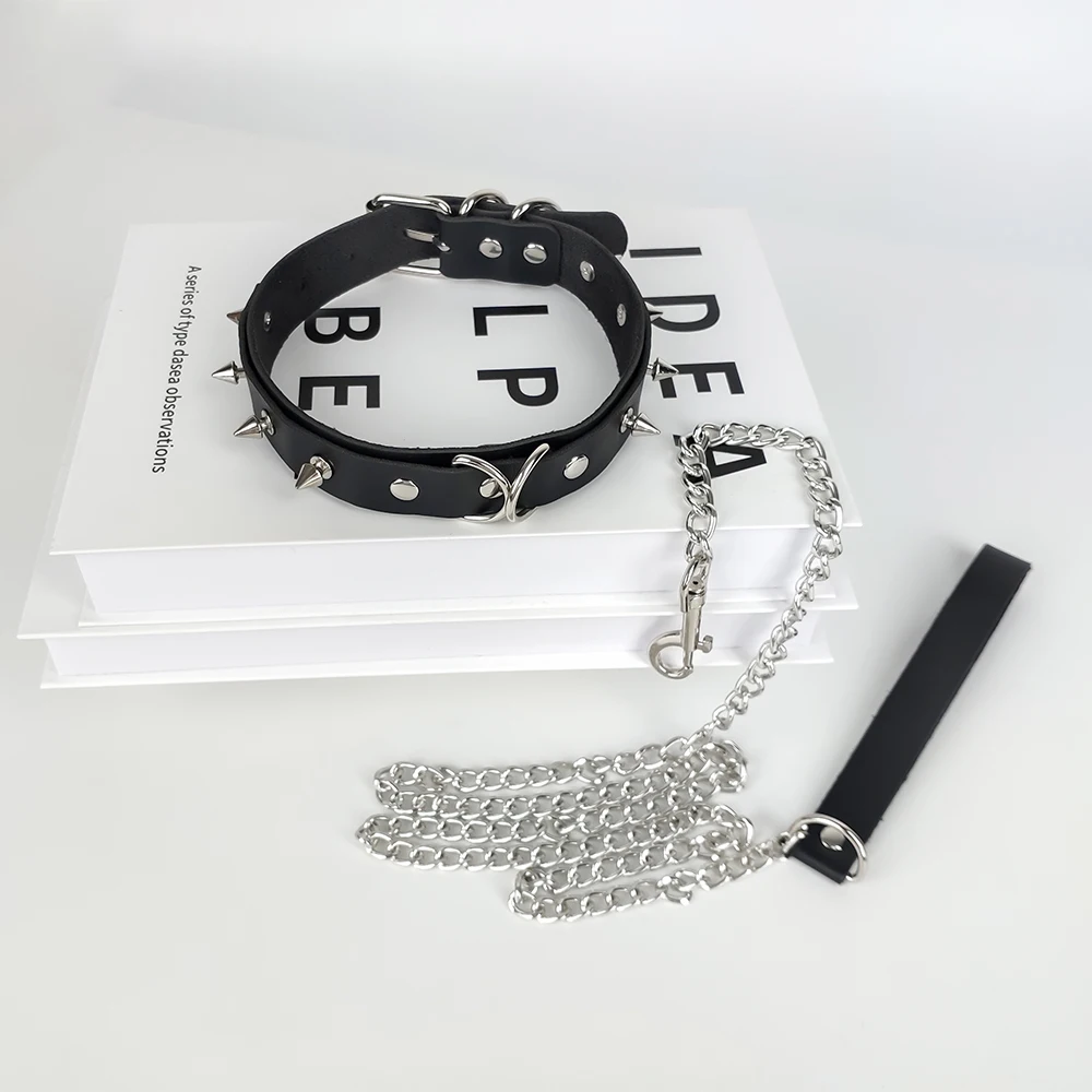Кожаный ошейник в стиле панк с поводком для женщин