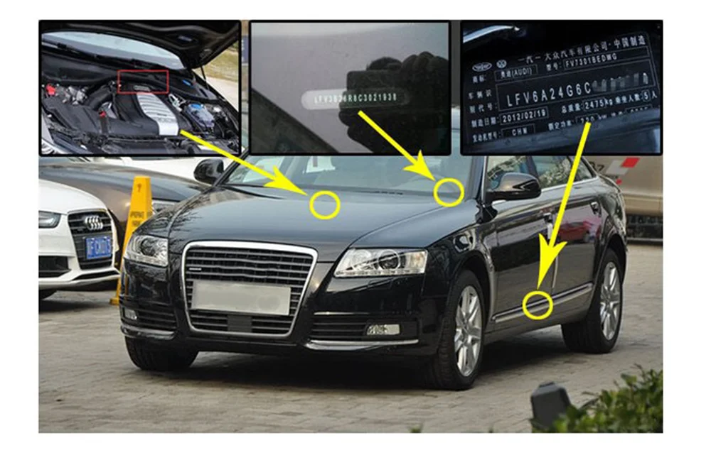 Вин обычно расположен в левом нижнем углу переднего лобового стекла или на шарнирном столбике двери главного водителя, дверного замка и двери, что является более заметным. Некоторые винты также расположены в моторном отсеке.