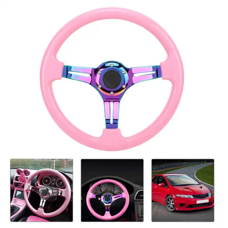 350 мм/14 дюймов ABS руль розовый 6 отверстий Универсальный гоночный руль модификация автомобиля