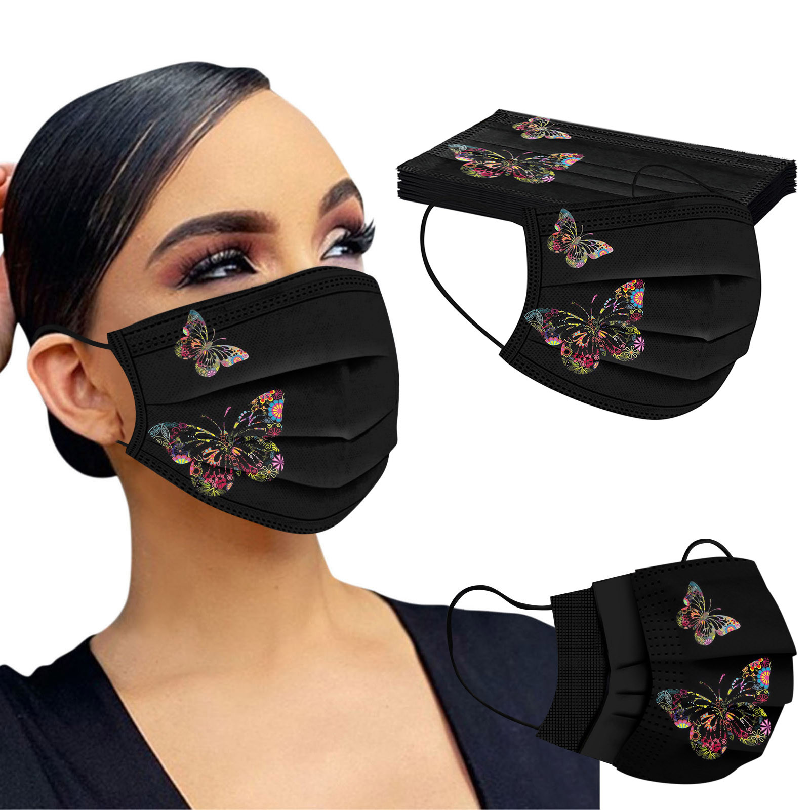 Отзывы о Маска для лица с 24 узорами взрослых черная дышащая маска со стрекозой и бабочками