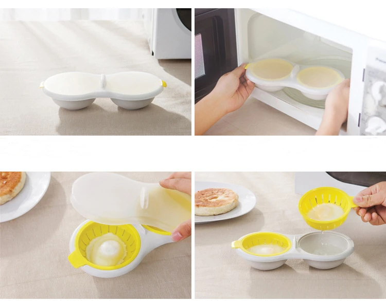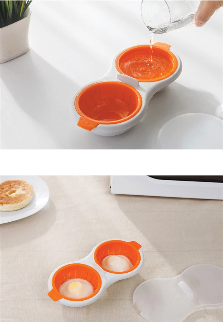 Этот продукт разработан двухслойной комбинацией сливной корзины и миски, а яйца замачиваются в воде, прекрасно представляют яйца-пашот, избегайте явлений легкого приклеивания яиц на пару; Он может одновременно варить 2 яйца, экономить время и не терять силы!