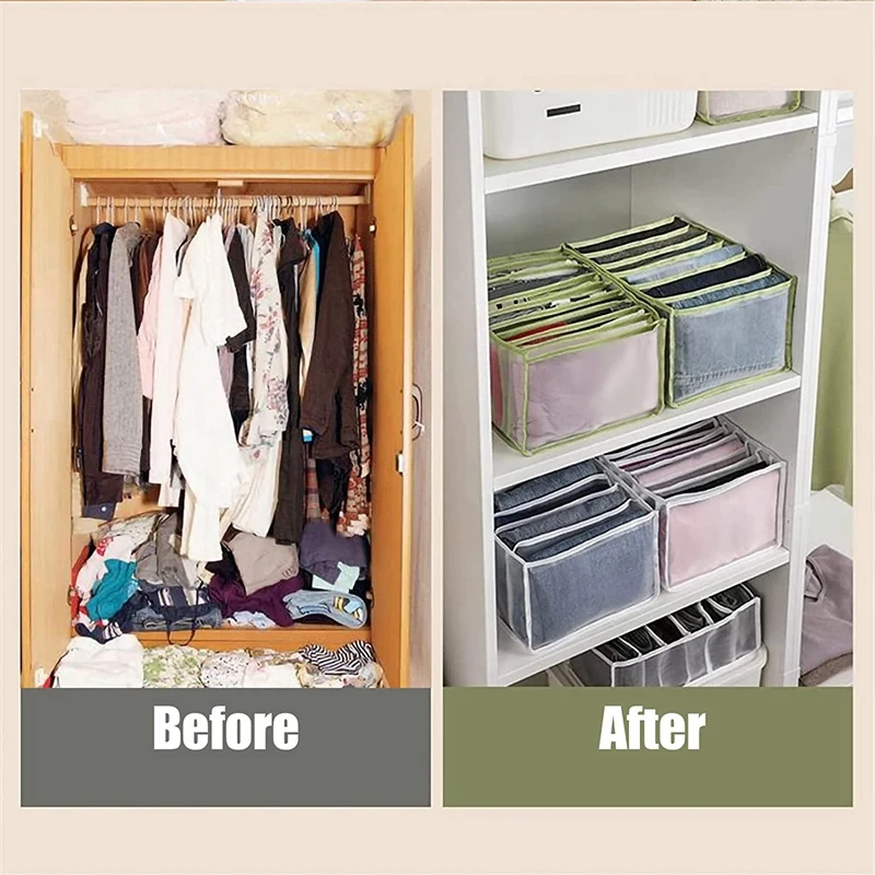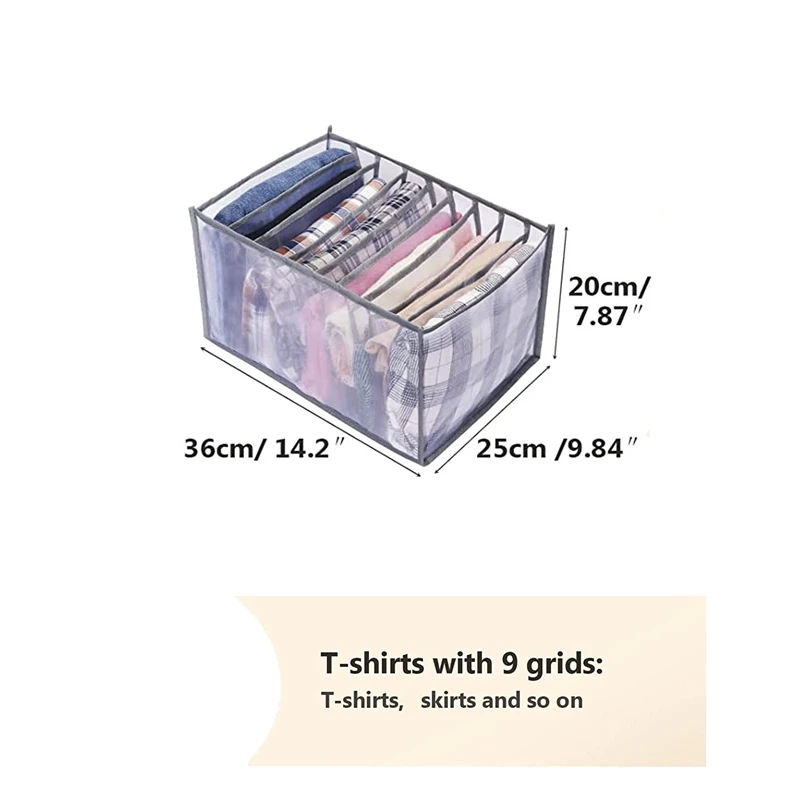 [Широко используется] Этот контейнер для хранения очень подходит для хранения джинсов, футболок, юбок, леггинсов, нижнего белья, носков, шарфов или других предметов. Вы можете использовать его для хранения в шкафах, ящиках, туалетных столиках, днях кровати и т. Д. Есть сетки для сортировки и организации ваших вещей, и это держит ваше живое пространство организованным.