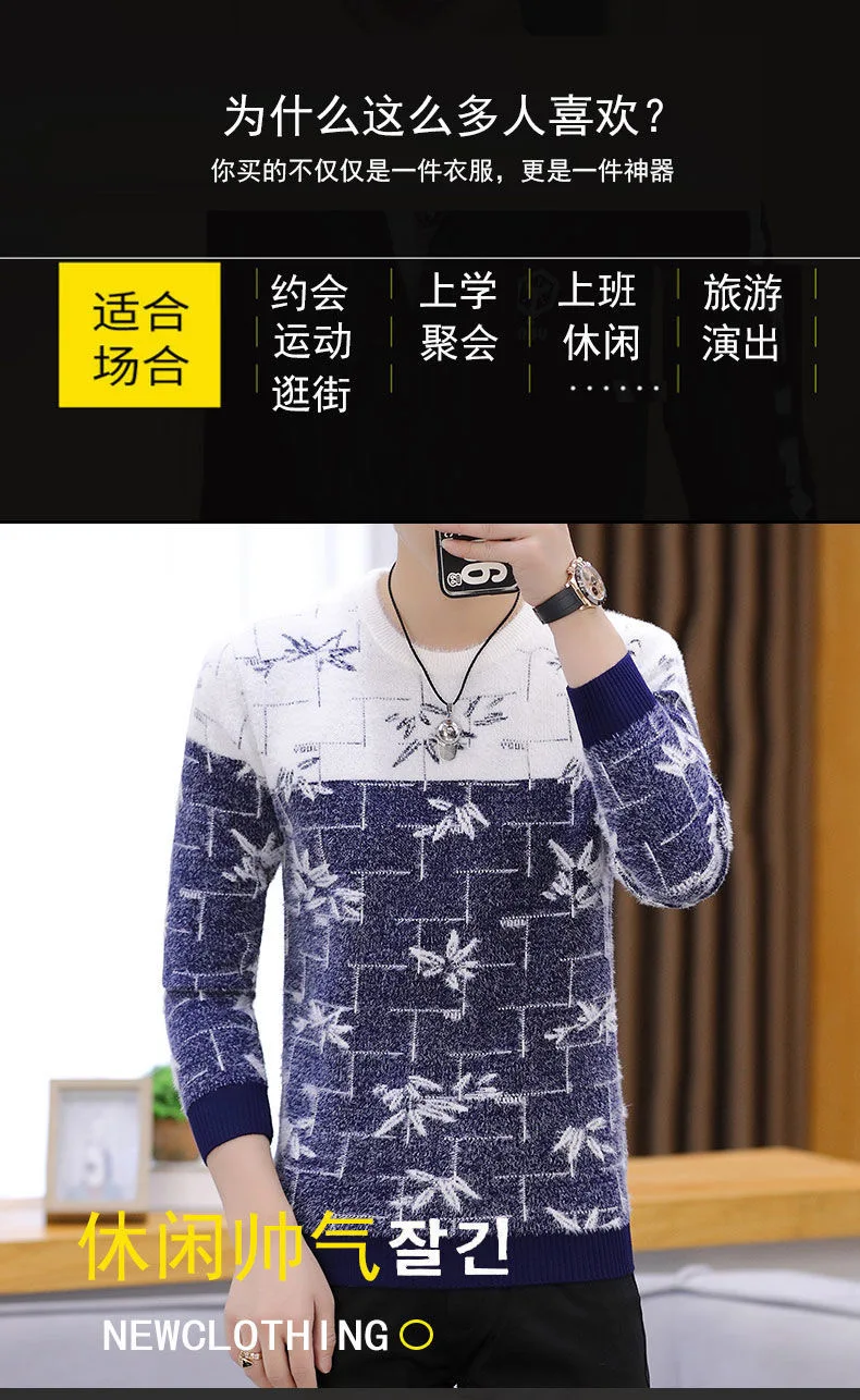 Отзывы о Мужской Повседневный шерстяной трикотажный свитер с круглым вырезом и принтом -