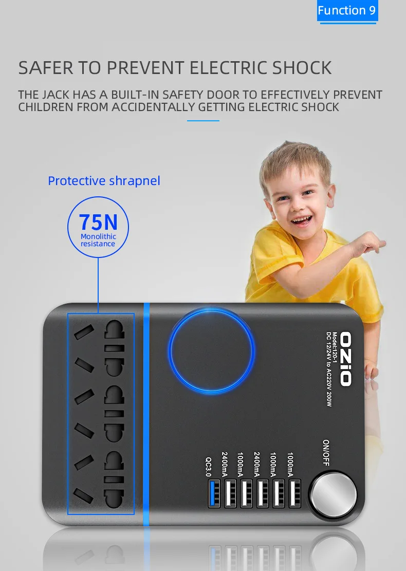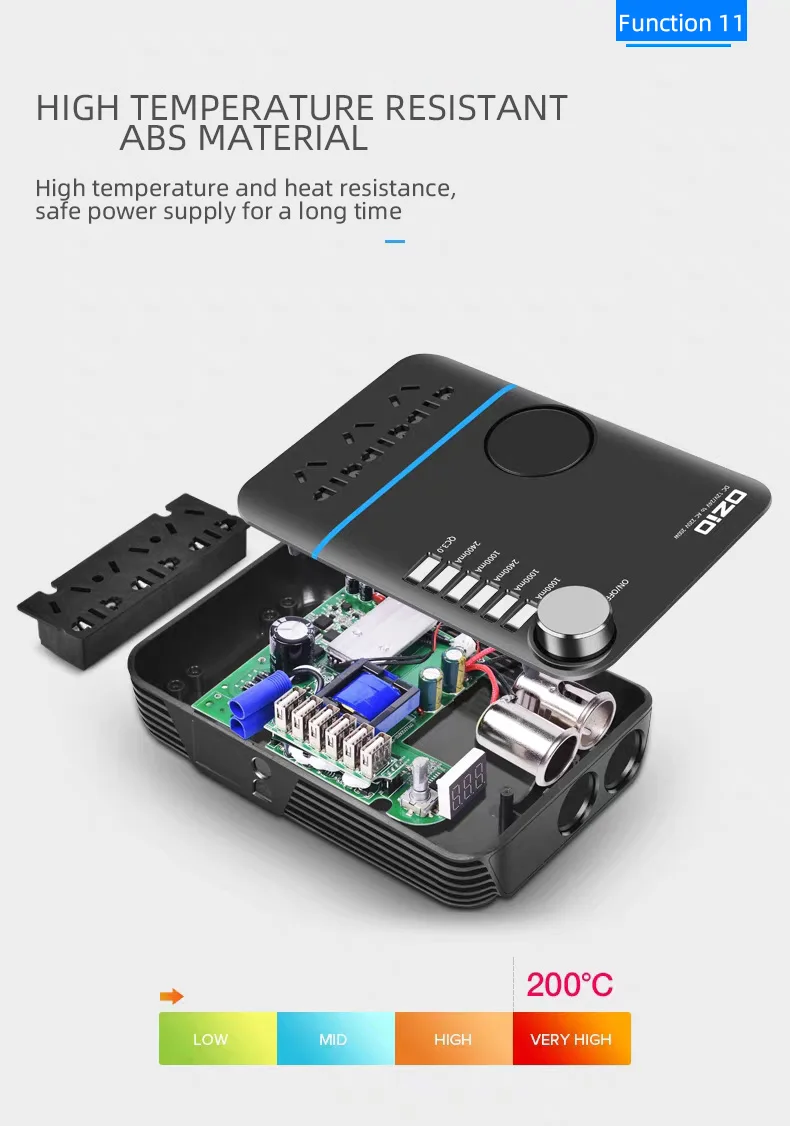 Многофункциональная розетка 12 В/24 В до 220 В, стандартные розетки 3 220 В, 5 портов USB, 1 розетка QC3.0