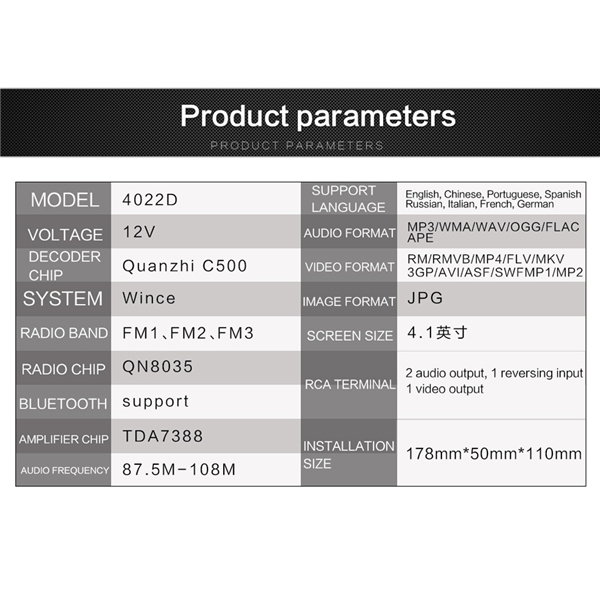 Поддержка аудиоформата: MP3/WMA/WMV/OGG/APE/ACC/FLAC/audio;