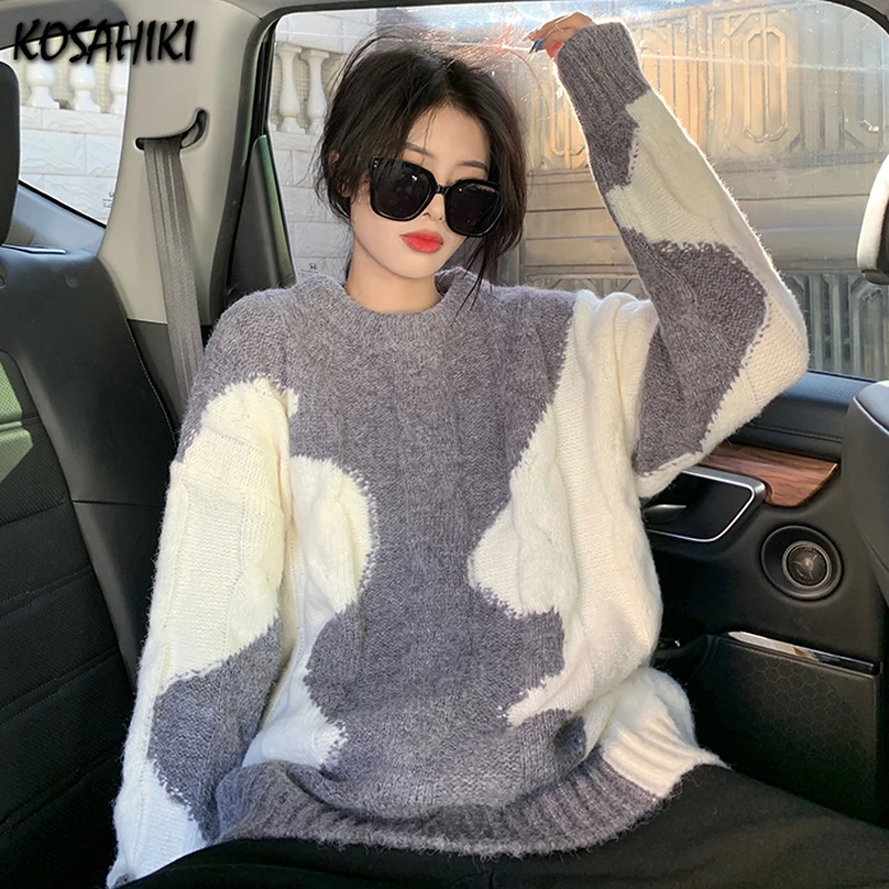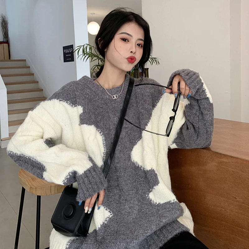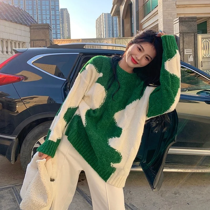 Отзывы о Женский пуловер koshiki вязаный свитер контрастных цветов в Корейском стиле