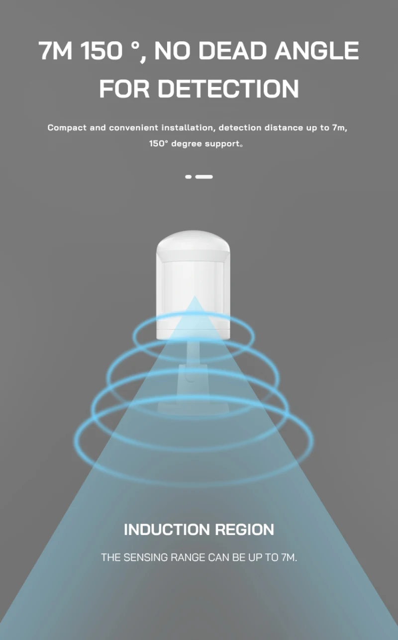 Компактная и удобная установка, расстояние обнаружения до 7m150 градусов поддержки.