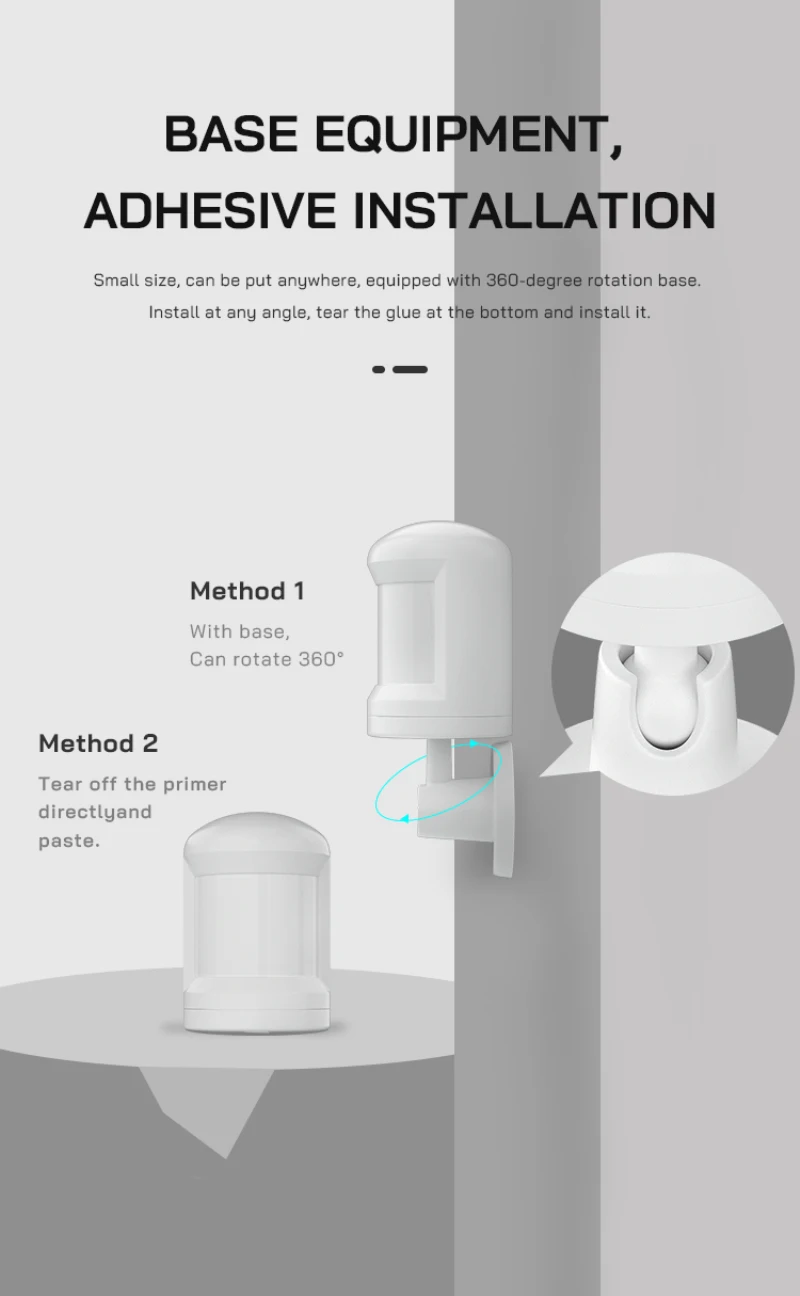 Маленький размер, можно положить в любом месте, оснащен вращением на 360 градусов под любым углом, разорвать клей в нижней части и установить его.