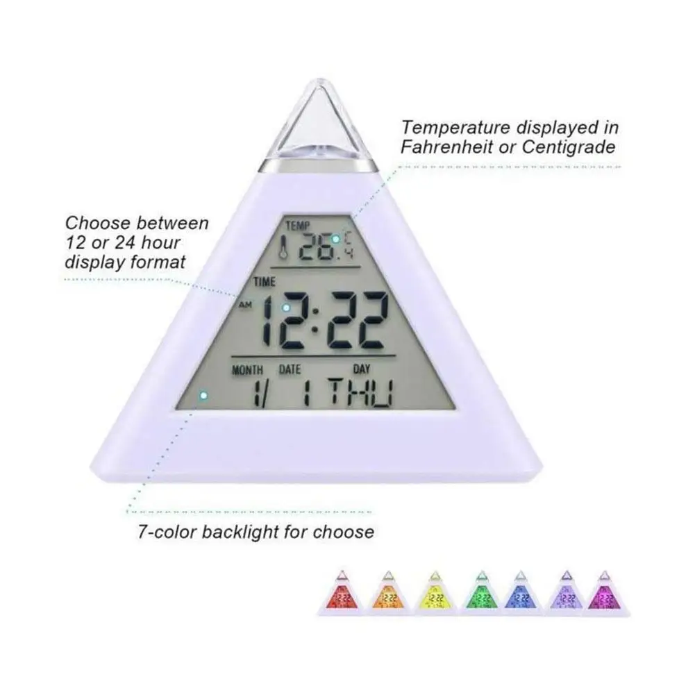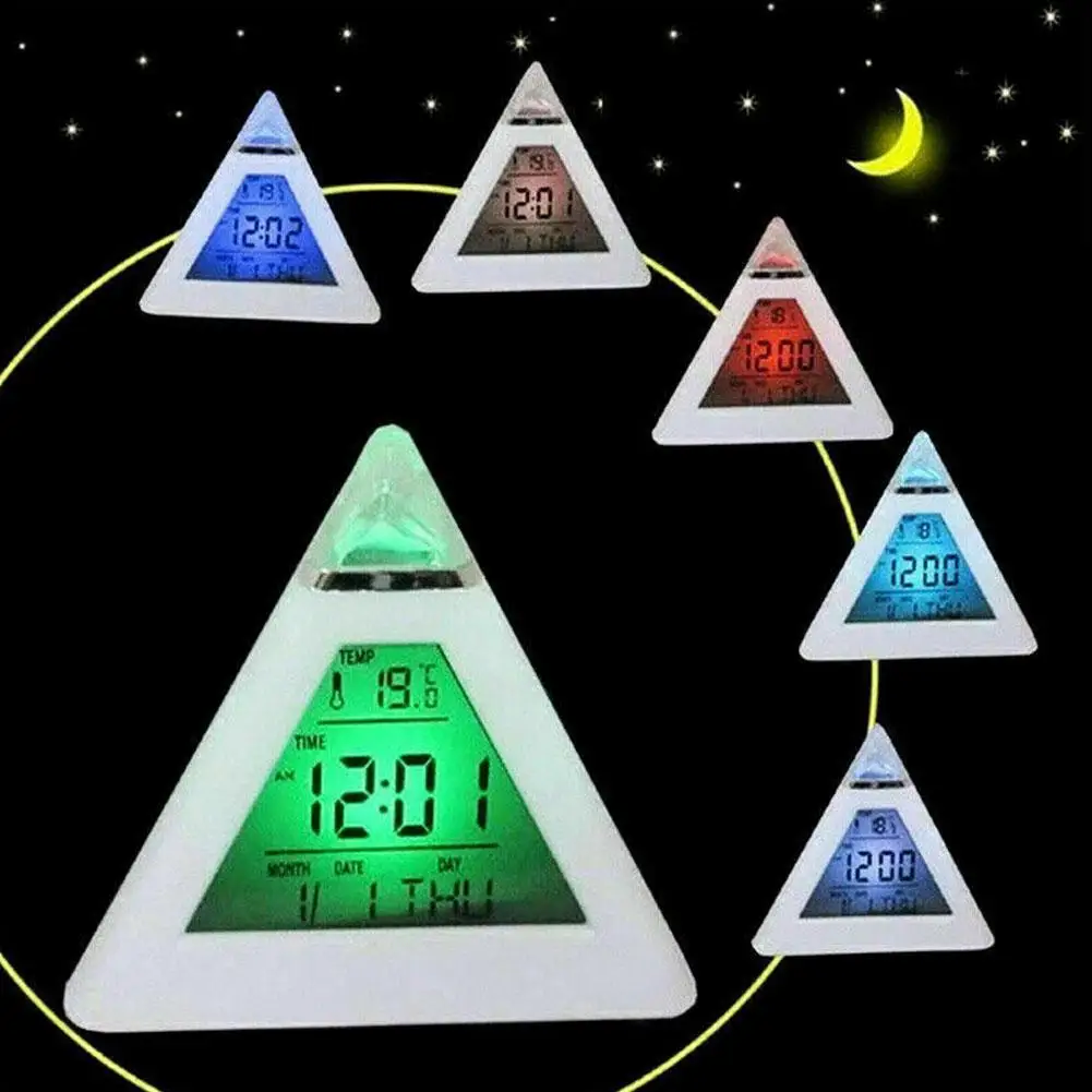 Треугольный 7 светодиодный Будильник с изменением цвета.