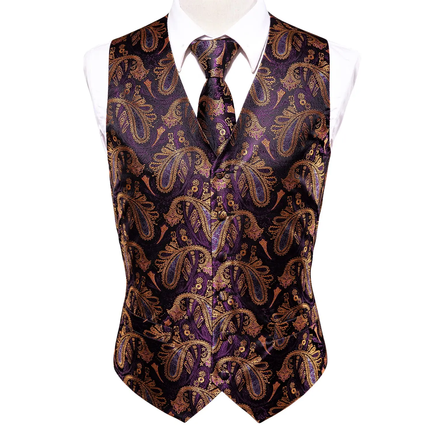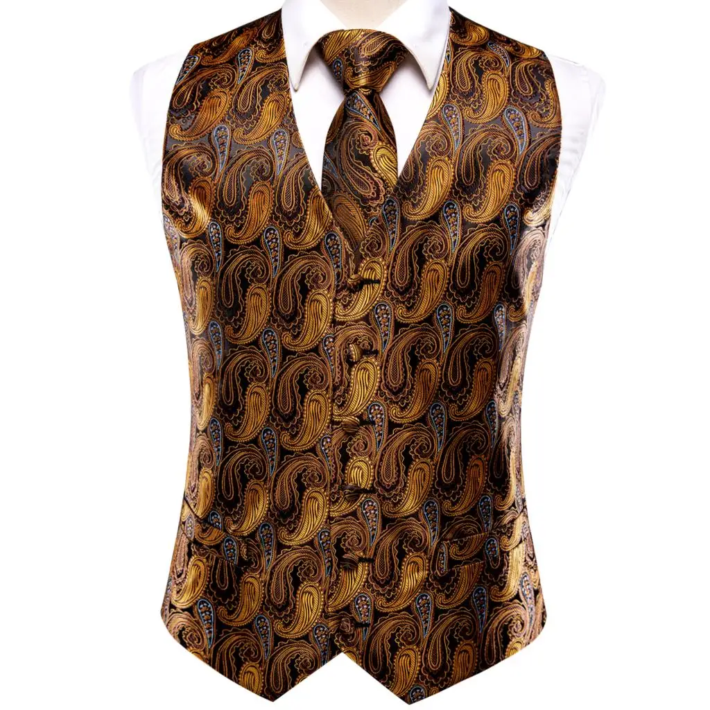 Отзывы о Hi-Tie Brand Silk Mens Vests Waistcoat Tie Hanky Cufflinks Set Red Blue Green Purple Gold Waist Jacket For Men Wedding Business | Мужская