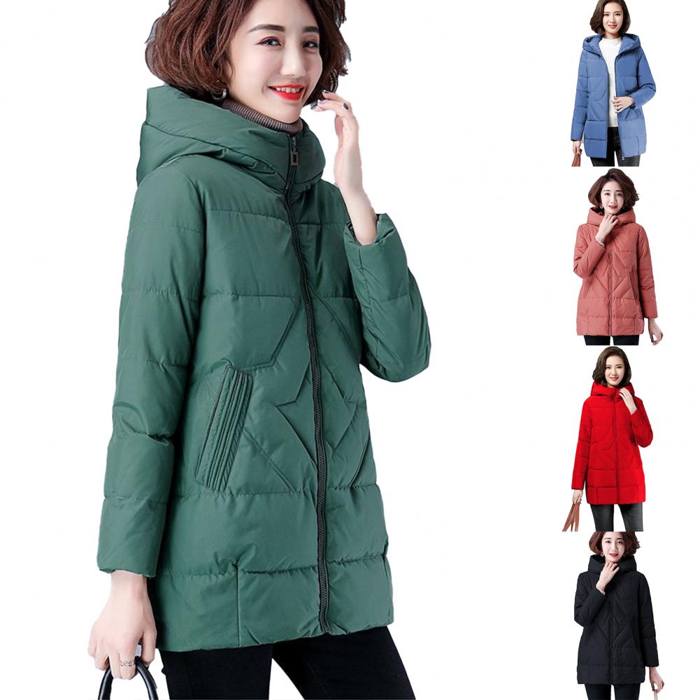 Женское пуховое пальто однотонного цвета с подкладкой, Толстая теплая Женская куртка для улицы