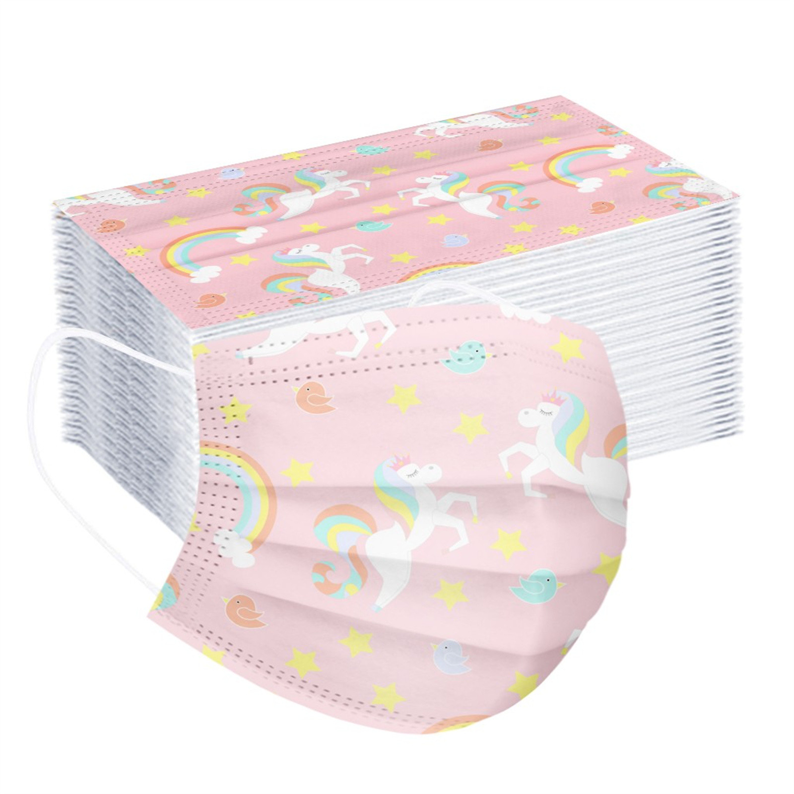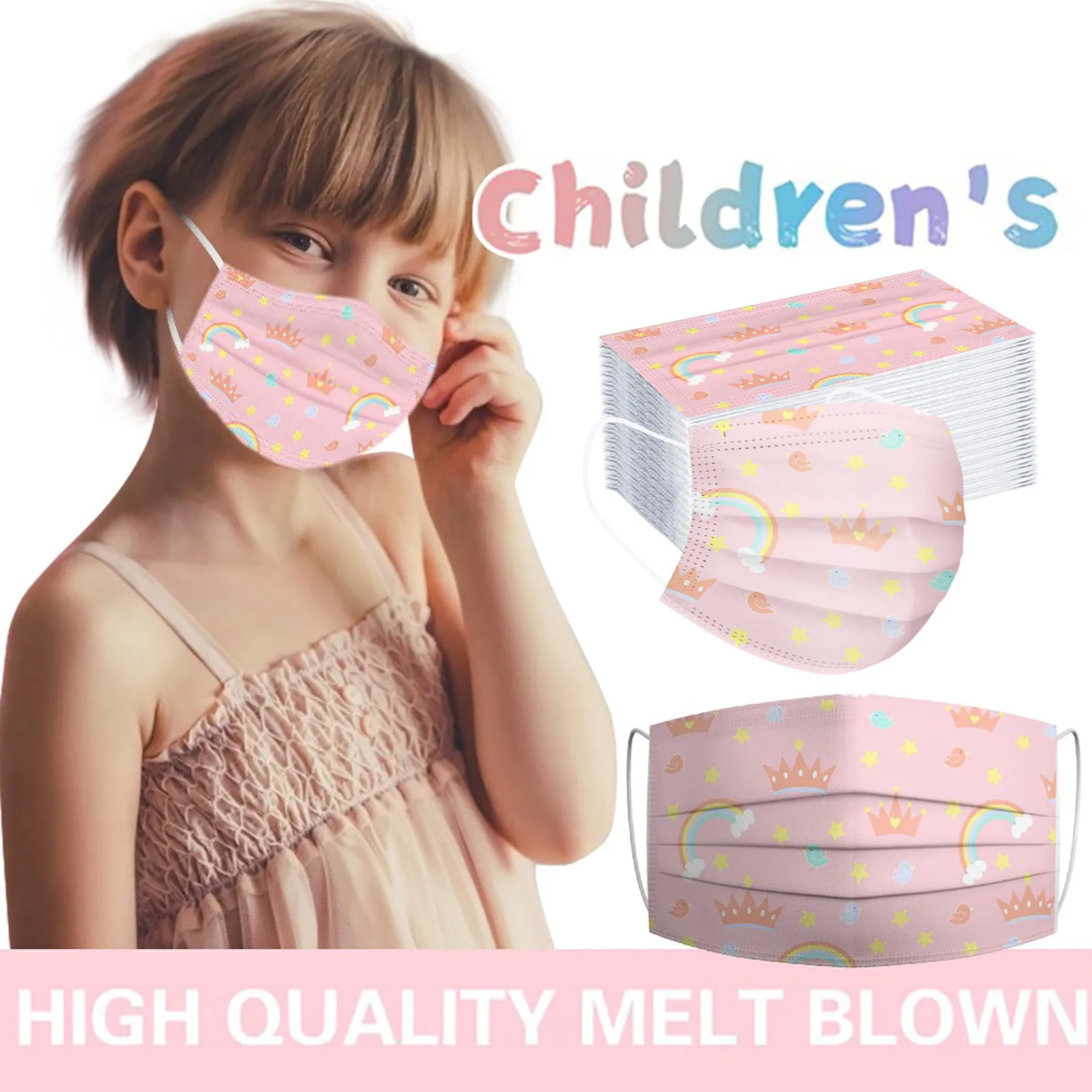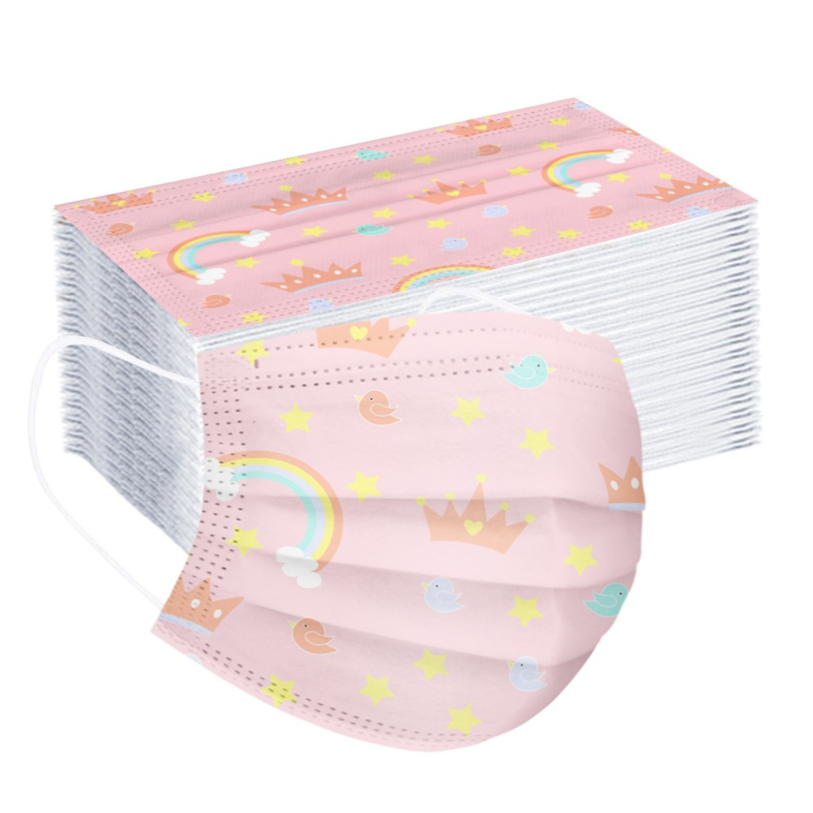Отзывы о 10/50pcs Children's Rainbow Print Disposable Mask Lovely Cartoon Mascararilla Masque Non Woven Industrial 3 Ply Ear Loop Masks - купить