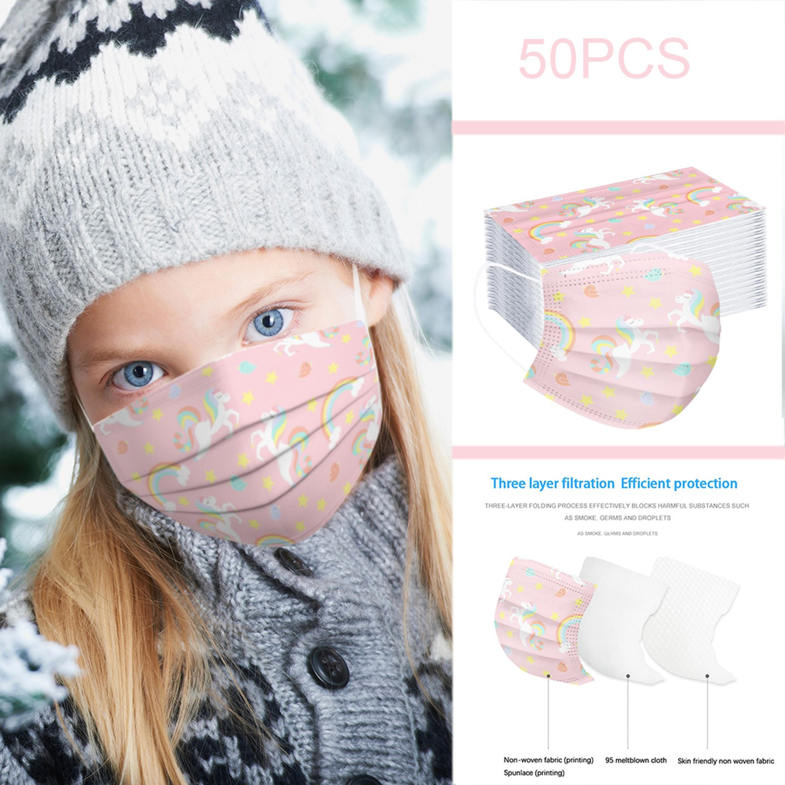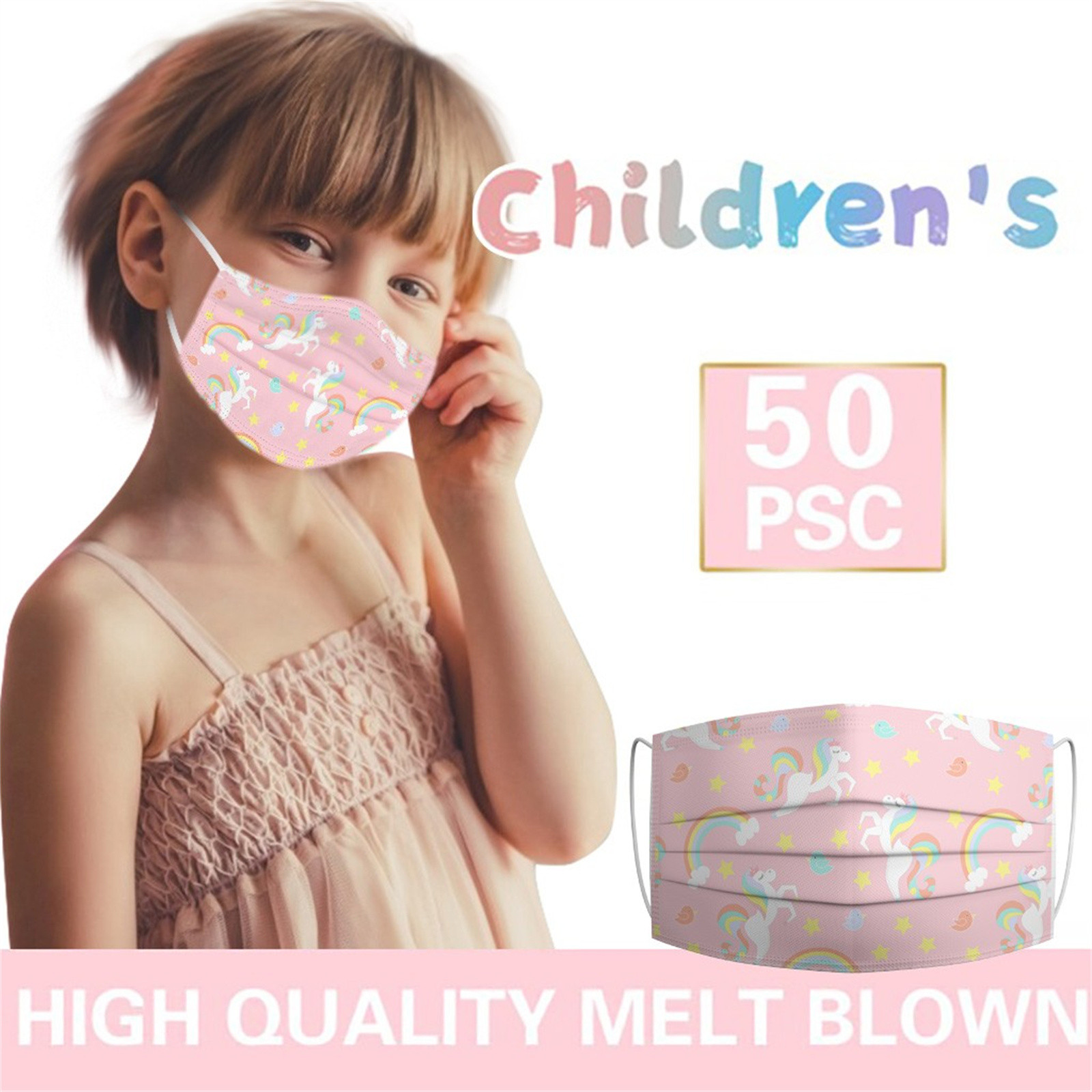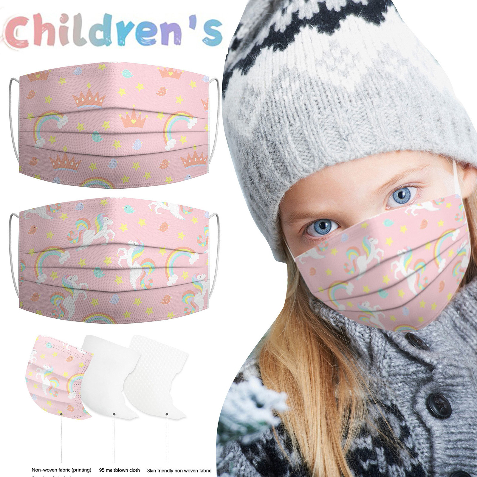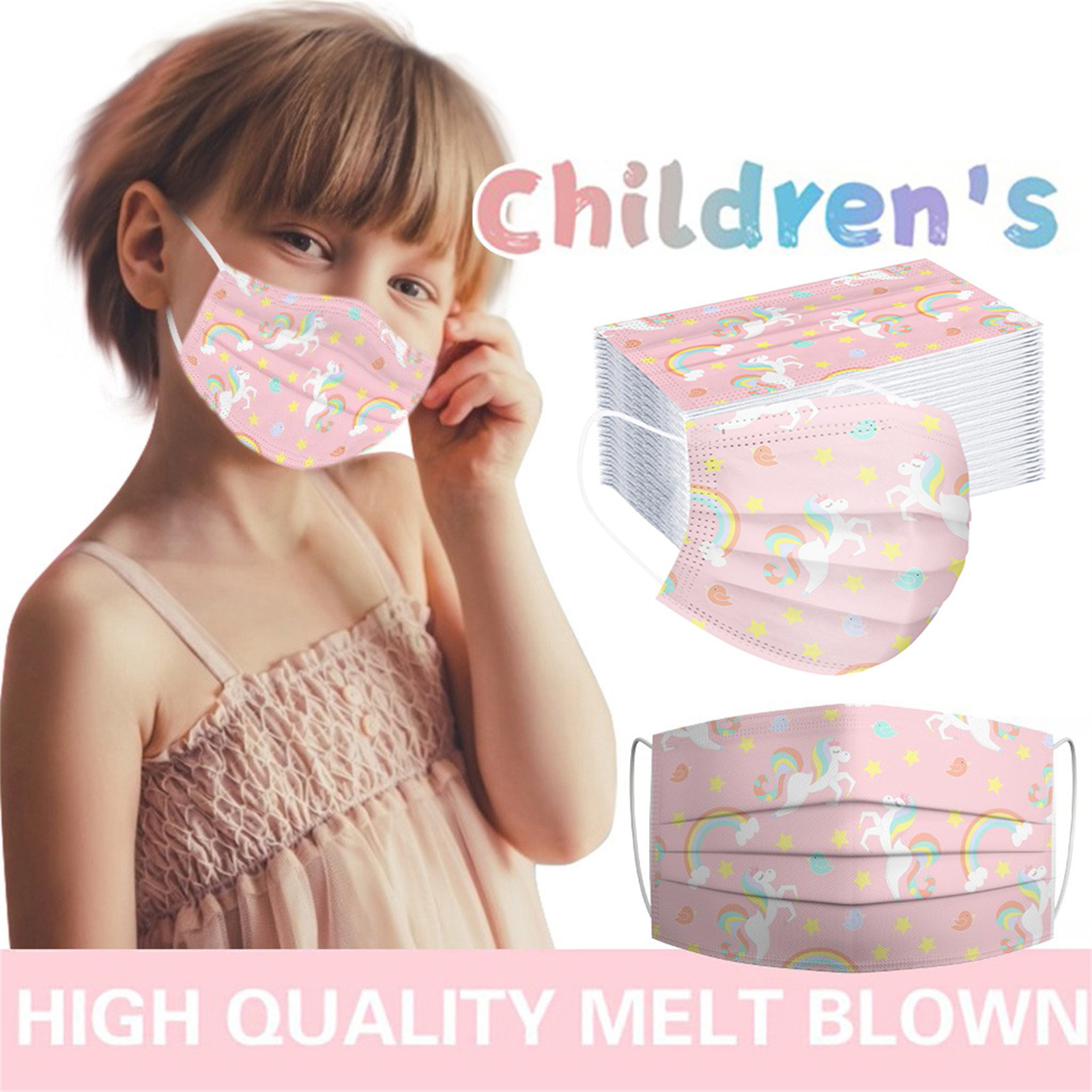 Отзывы о 10/50pcs Children's Rainbow Print Disposable Mask Lovely Cartoon Mascararilla Masque Non Woven Industrial 3 Ply Ear Loop Masks - купить