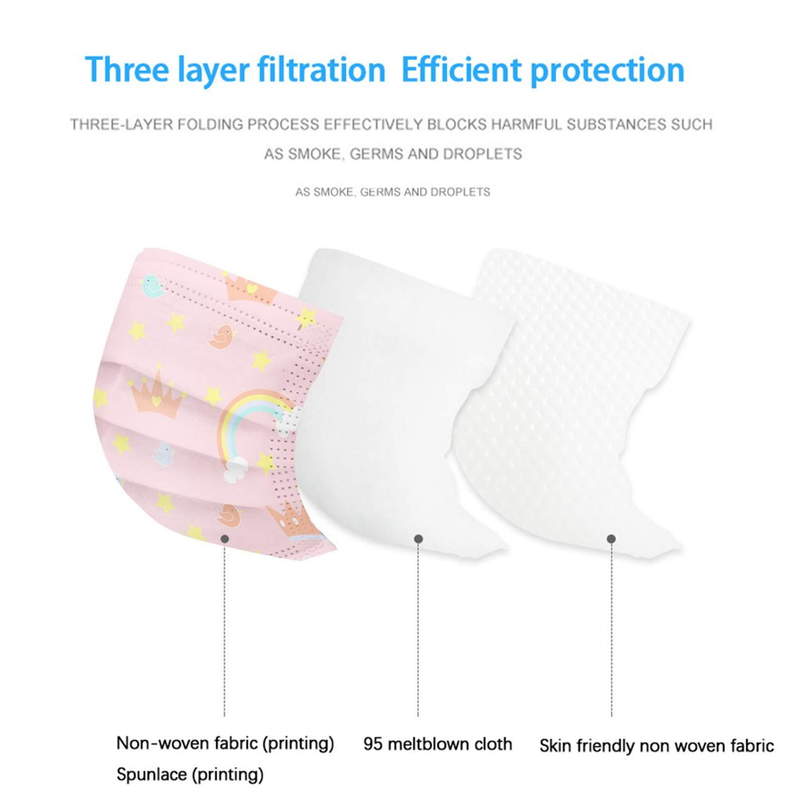 3 слоя Нетканая одноразовая маска изготовлена из 3 слоев нетканого материала, он безопасен для здоровья и безопасный для вас, чтобы использовать. Дышащий материал и милые узоры, что делает его полезным и модным. Специальный 3 слоя из нетканого материала, дизайн, обеспечивает некоторыеЗащита от D'ust, автомобильных выхлопных газов, пыльцы и т. д. эластичная петля для ушей, легко надевается и не давит на уши. Маникюрный салон или любые другие области, где может потребоваться защита