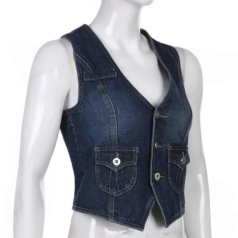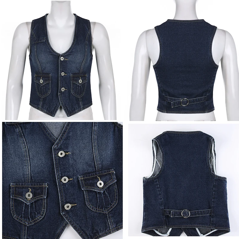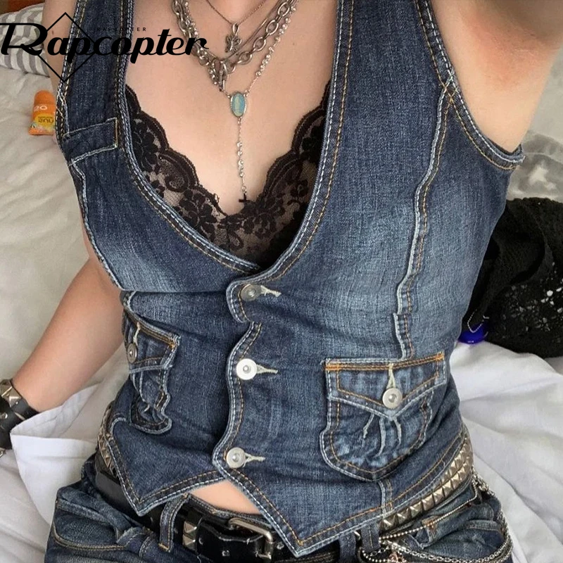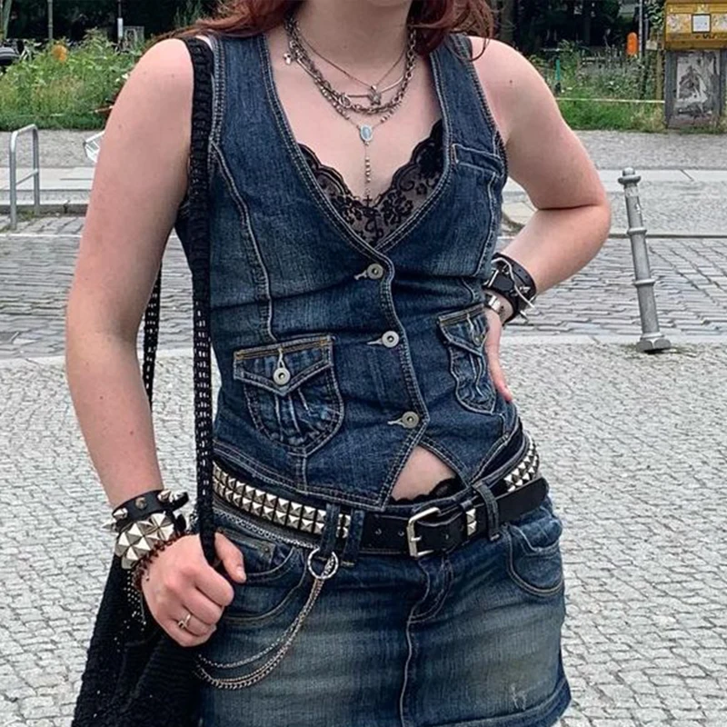 Отзывы о Джинсовый корсет Rapcopter Y2K с карманами уличный Топ на пуговицах V-образный вырез