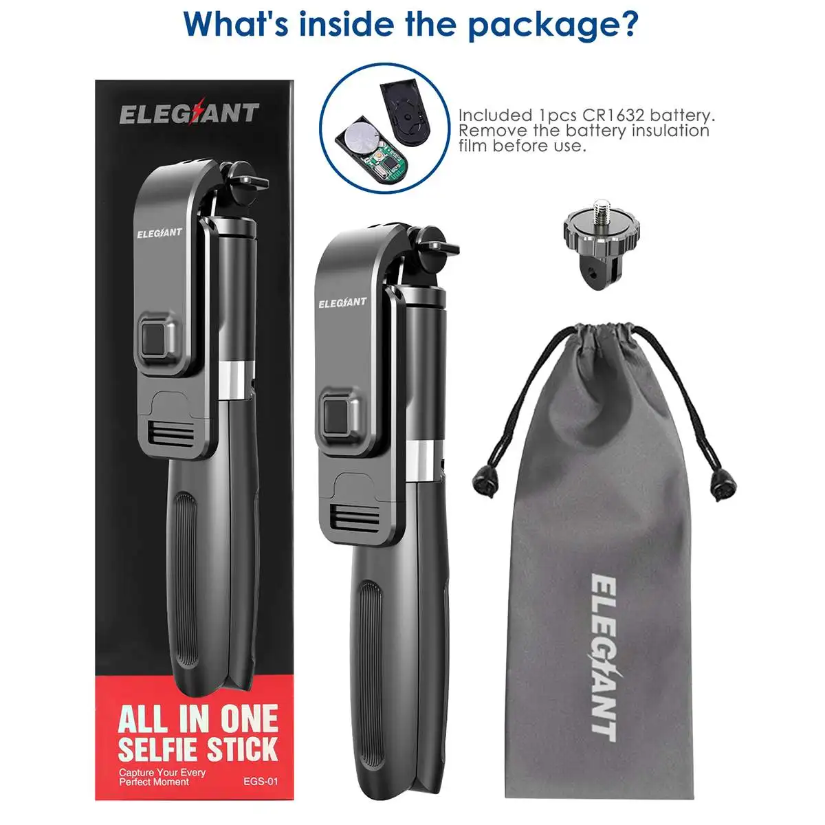Характеристики: Материал: металл Цвет: черный Держатель телефона Ширина: 6-9,5 см/2,4-3.7in (прибл.) Съемный пульт дистанционного управления: Да Удаленный источник питания: аккумулятор CR1632 (входит в комплект)-1 шт. Выдвижная Длина: 100 см/39,4 дюйма (прибл.) Складная длина: 19 см (приблизительно)