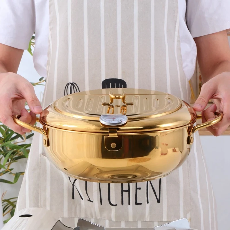 Сковорода Из Нержавеющей Стали с термометром кухонная утварь темпура сковорода для жарки Удобная сковорода