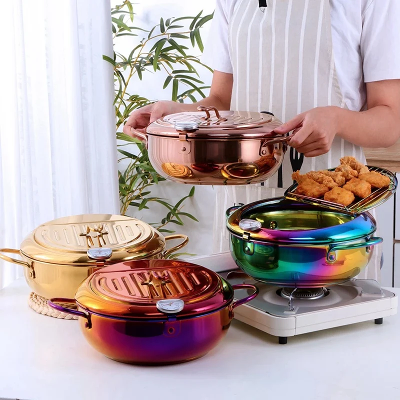 Фритюрница высокого качества-Фритюрница темпура отличается от других 201 фритюрница из нержавеющей стали, она изготовлена из нержавеющей стали для лучшего здоровья и долговечности, не прилипает и легко моется. С простым дизайном и хорошей функциональностью. Съемная крышка кастрюли из нержавеющей стали, легко носить с собой и портативный дизайн.