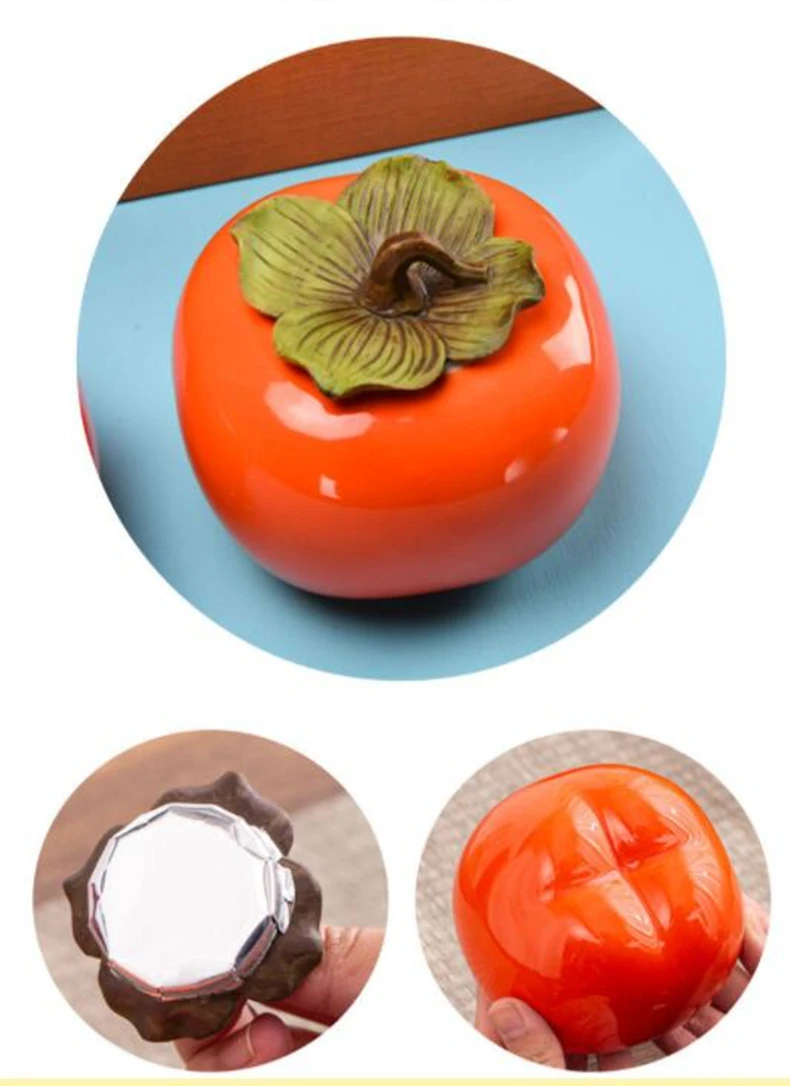 Функция: емкость для хранения пищи, резервуар для чая, бак для сахара, бак для хранения мелких вещей .......Кухня Декор специи Герметичные банки Милая хурма форма банки для чая фарфор сухие фрукты коробка для хранения закуски контейнер для сахара S/M/L