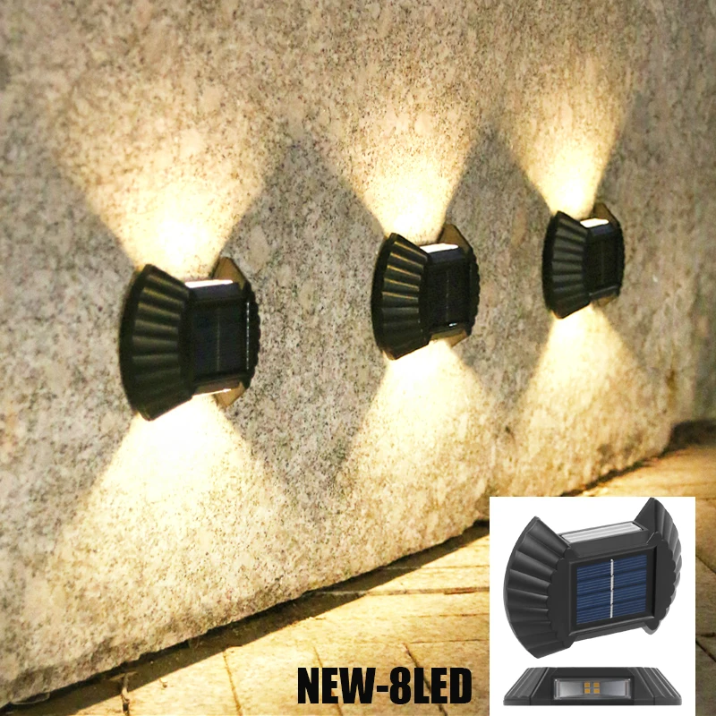 8 светодиодный новый Солнечный СВЕТОДИОДНЫЙ Уличный настенный светильник Водонепроницаемый уличный Декор Светильник s для балкона сад Пейзаж лампы Солнечный Уличный настенный светильник