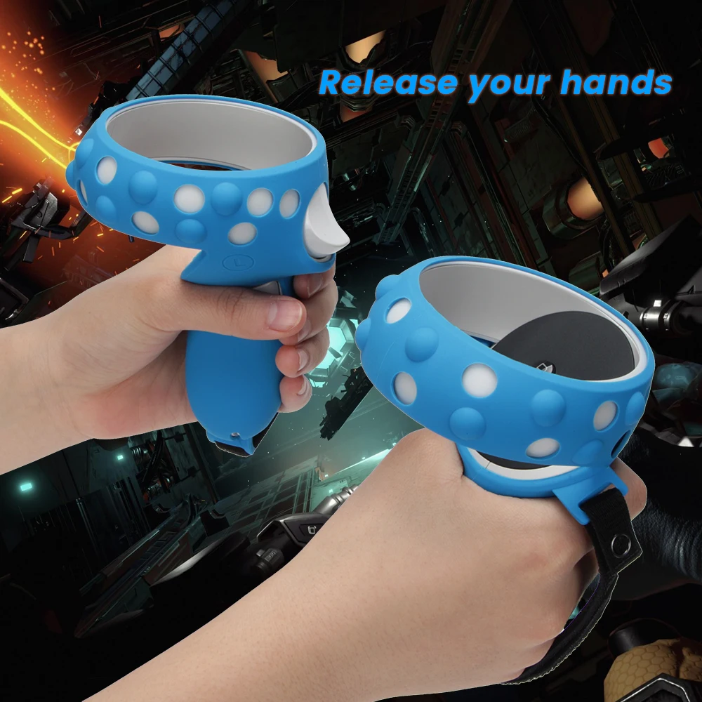 Особенности:1. Идеальный опыт виртуальной реальности: идеально подходит для контроллеров Oculus Quest 2 VR, защищает гарнитуру от царапин и обеспечивает невероятно Захватывающий игровой опыт виртуальной реальности.