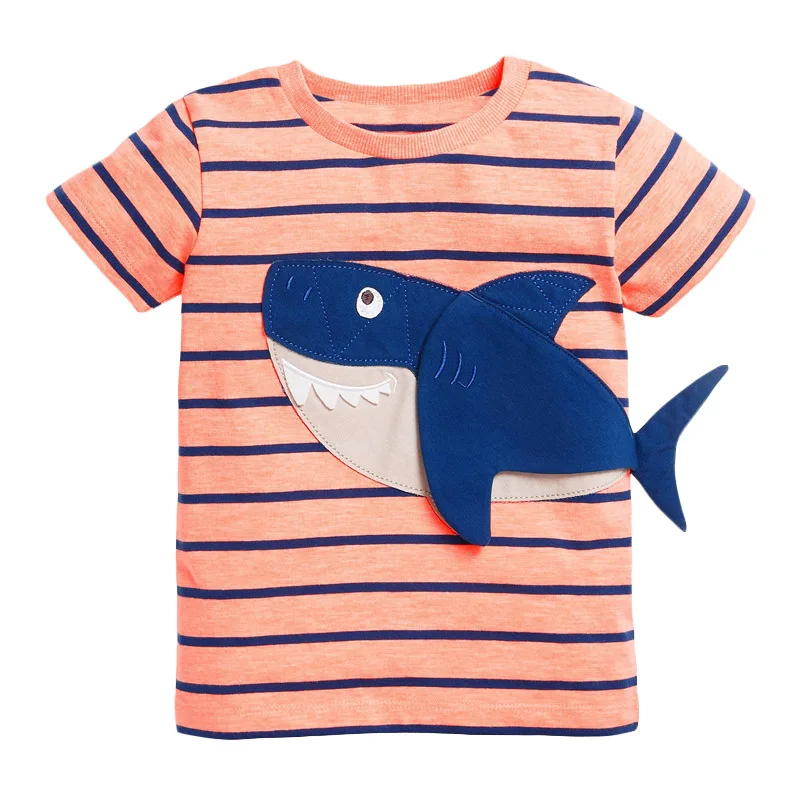 Отзывы о Футболка детская летняя хлопковая в полоску с аппликацией акулы - купить по