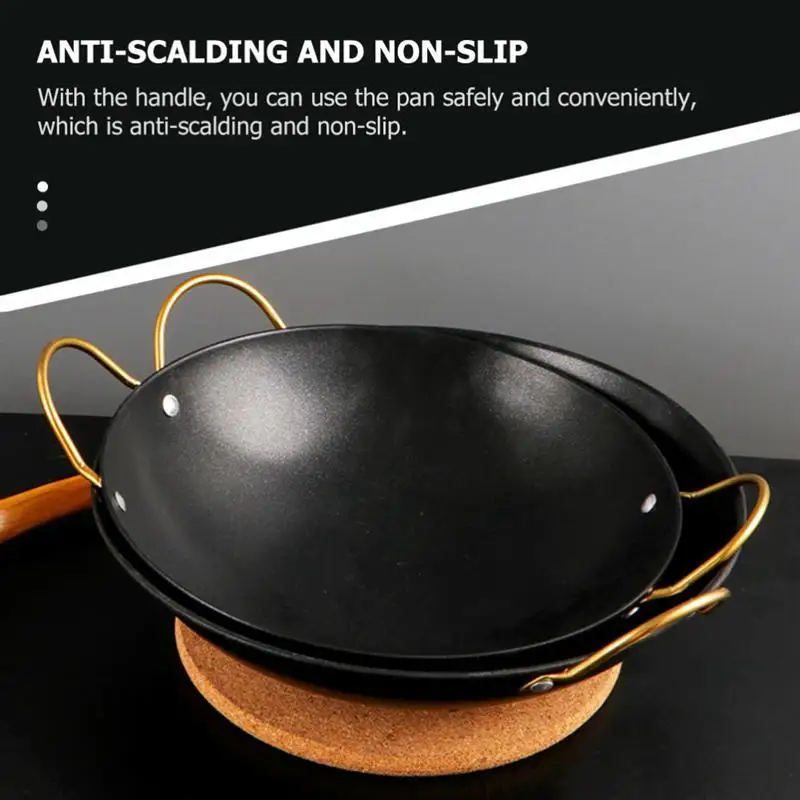 -С ручкой, вы можете безопасно и удобно использовать сковороду, которая является анти-обжигающей и нескользящей.