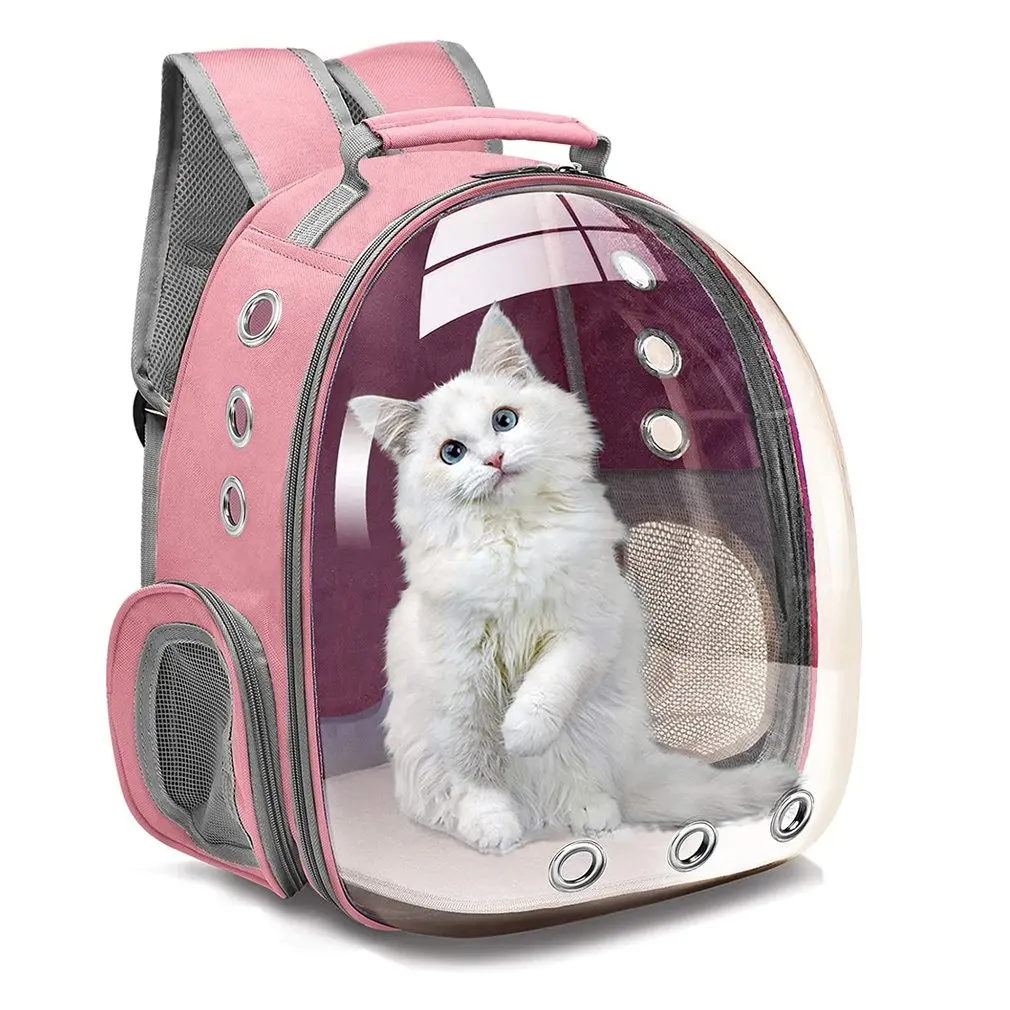 Прозрачная капсула с пузырьками и вентиляционными отверстиями, встроенный защитный поводок и мягкая моющаяся накладка. Спереди и сбоку на молнии.