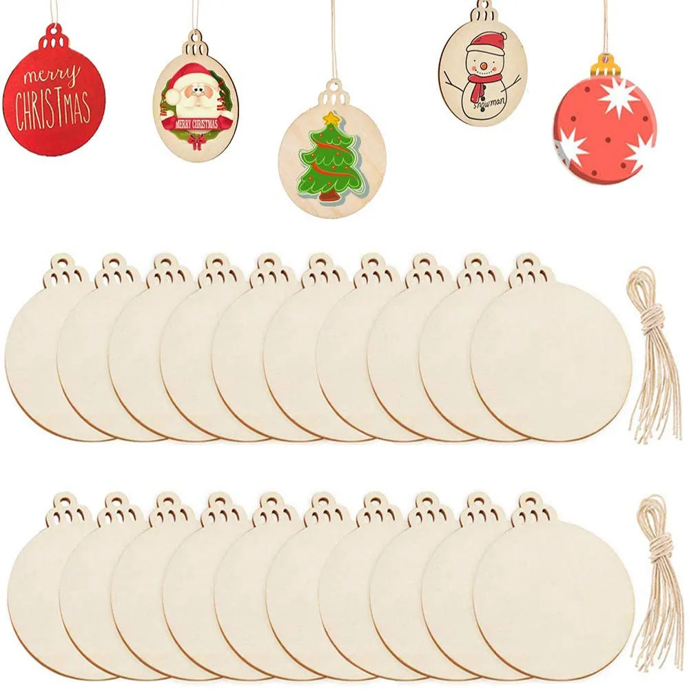 Отзывы о 10/20Pcs Unfinished Wood Slices Wooden Circles Discs with Rope Christmas Tree Decoration hanging ornaments blank wood pendants - купить по