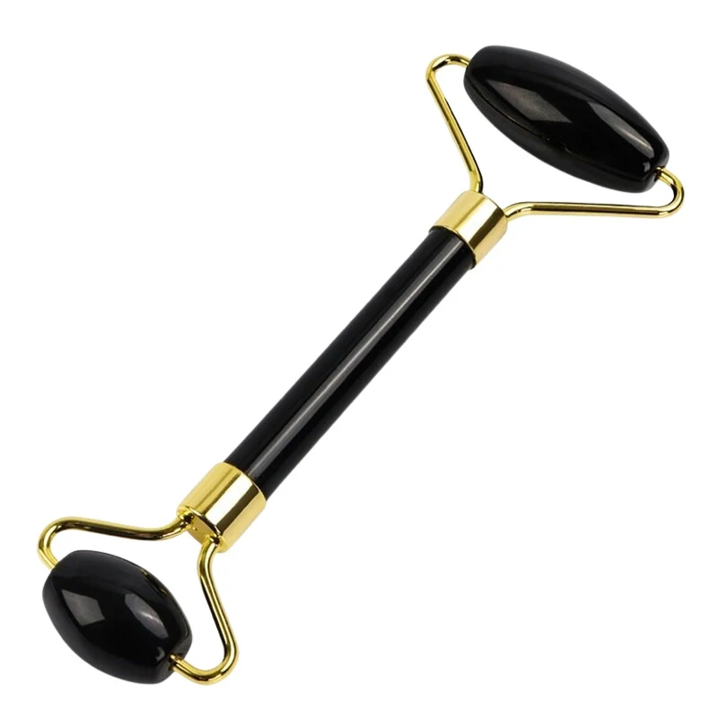 Массажер для лица из натурального черного обсидиана с двумя роликами разного размера. Улучшает состояние и качество кожи, тормозит возрастные изменения, предотвращает формирование отеков и мимических мышц.