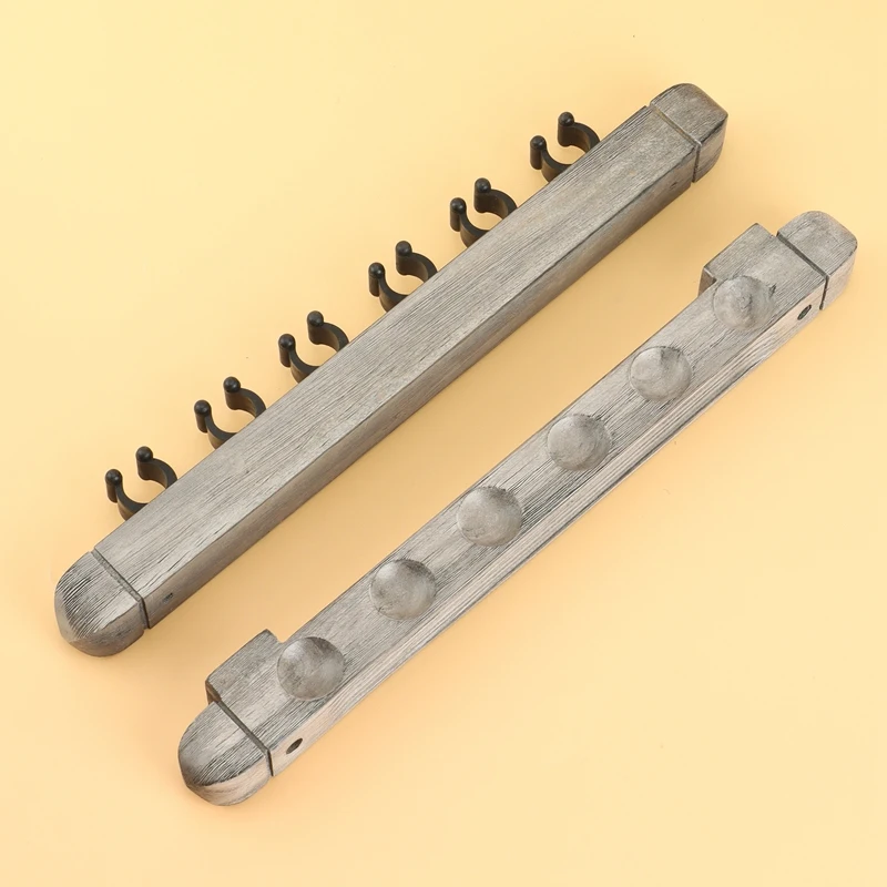 [Изысканный дизайн] Нижняя часть стойки имеет форму паза для поддержки и зажимы для стойки удерживают вал. Стойка настенная и может держать 6 бильярдных кистей.