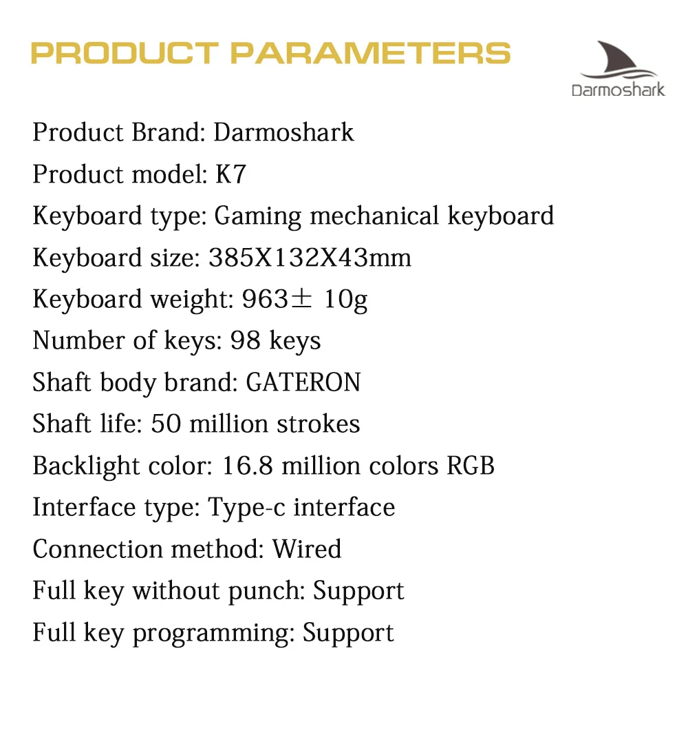 Новая игровая механическая клавиатура Darmoshark K7 RGB с 98 кнопками, проводная USB, горячая замена, клавиатура вала GATERON для Win/Mac/iPad, компьютерный геймер