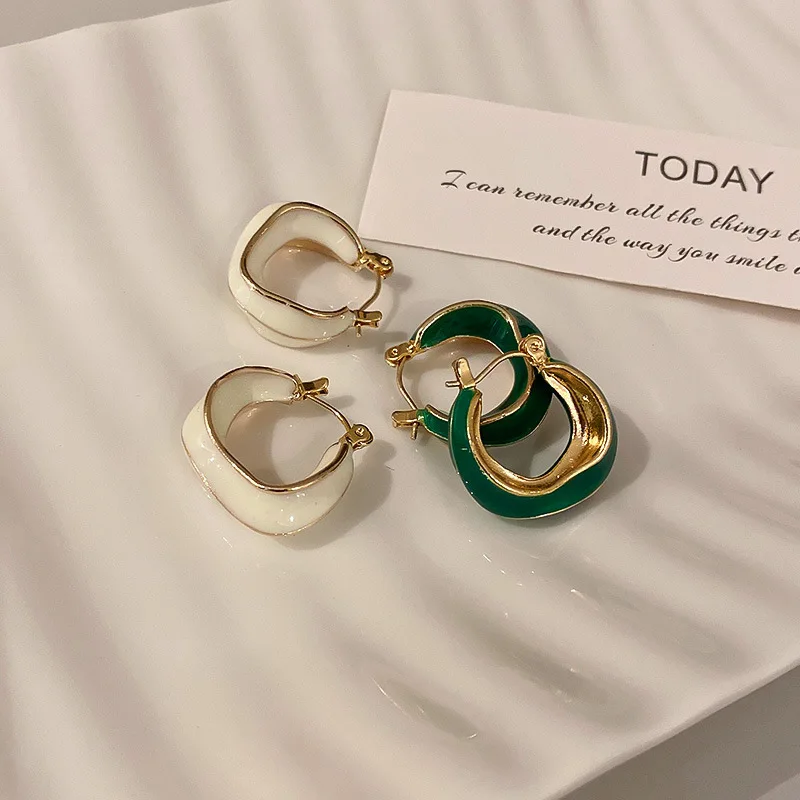 Отзывы о Корейские женские серьги неправильной геометрической формы с Эмалью Белого и