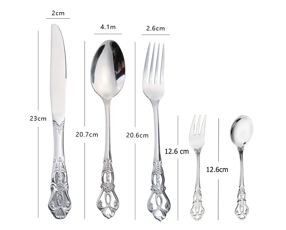 Всего 24 штуки в комплекте, нож + ложка + вилка + кофейная ложка + кофейная вилка.
