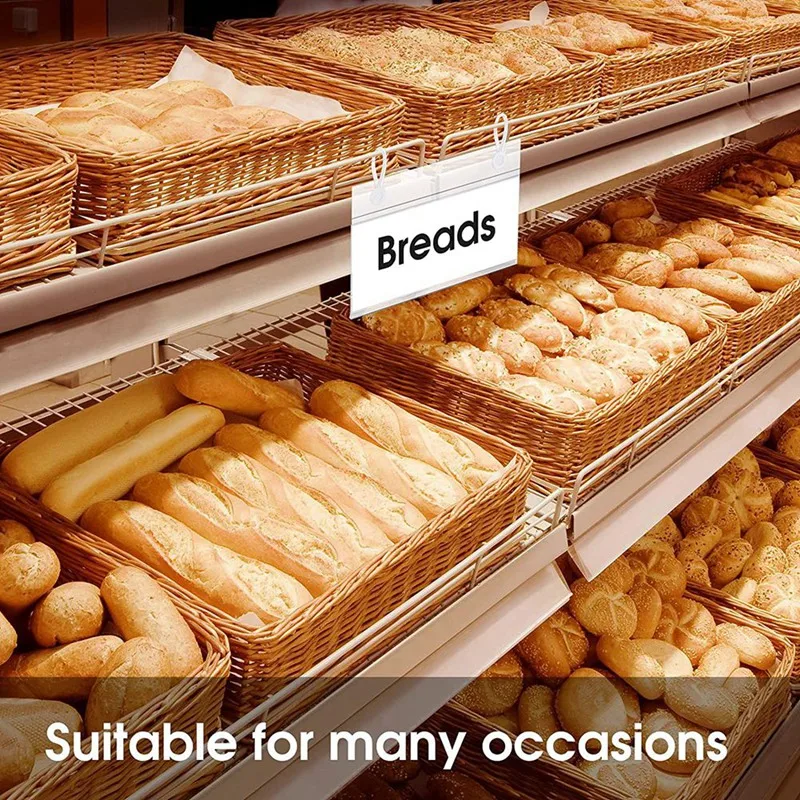Подходящие случаи: Эти зажимы для вешалок для билетов с простой застежкой на кнопке могут широко применяться во многих случаях, таких как супермаркеты, магазины, продуктовые магазины, пекарни, аптеки, склады, магазины аксессуаров, книжные магазины, кухни и могут быть закреплены на бамбуковых корзинах, корзинах из нержавеющей стали и т. д.