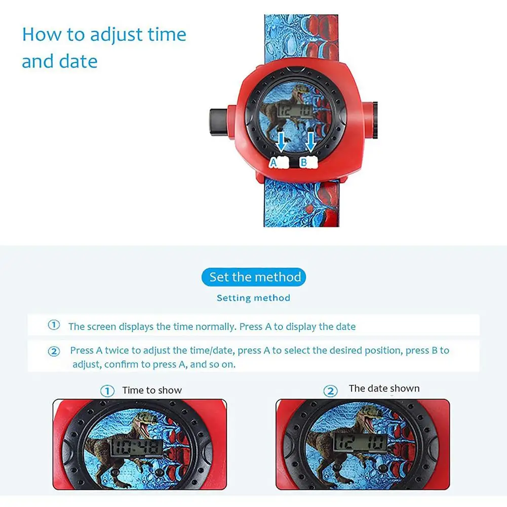 3. 2 в 1 дизайн: это также проекционная игрушка и электронные часы с крутыми изображениями динозавров.
